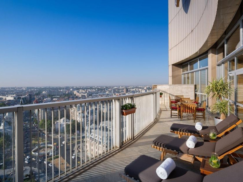 El hotel Intercontinental de Bucarest, el mandaacute;s alto de la capital rumana, goza de una situaciandoacute;n privilegiada, elevandaacute;ndose sobre el centro de la ciudad, en la plaza de la Universidad. Se encuentra a solo unos minutos del Teatro Nacional y de diversos negocios y zonas comerciales, asandiacute; como de manduacute;ltiples puntos de interandeacute;s turandiacute;stico, como el casco antiguo, el museo de Bucarest, el Museo Nacional de Arte de Rumanandiacute;a y el Museo de Historia Nacional de Rumanandiacute;a. El Parque Ciand#351;migiu y la plaza Unirii se encuentran a un corto paseo, asandiacute; como el Palacio del Parlamento. Este emblemandaacute;tico hotel de 25 plantas acoge a sus huandeacute;spedes en un entorno de lujo y elegancia. Todas las habitaciones gozan de vistas panorandaacute;micas de la ciudad y estandaacute;n bellamente decoradas, desprendiendo una elegancia clandaacute;sica. En el piso superior los clientes pueden disfrutar del centro de fitness y bienestar con piscina cubierta, sauna, baandntilde;o de vapor, masajes y una terraza con unas vistas anduacute;nicas. En el restaurante se sirven deliciosos platos tradicionales de la cocina rumana, asandiacute; como de autandeacute;ntica cocina italiana. Un lugar realmente fantandaacute;stico para disfrutar de esta fascinante ciudad.
