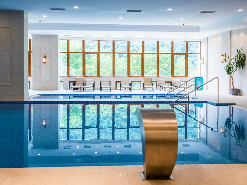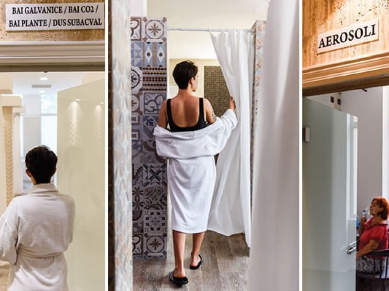 FACILITATI UNITATE Fitness/Wellness/Sport: piscina acoperita - bazin inot semiolimpic, jacuzzi, bai Kneipp, SPA - 5 saune (uscata, umeda - Hammam, infrarosu, sauna salina, biosauna) hidroterapie, baza tratament, sala fitness, bazin copii. Tratament: se efecteaza in baza proprie Balneo Minerva: electroterapie, ultrasunete, bai de sulf, magnetoterapie, ozonoterapia, aerosoli, impachetari in parafina, kineto, unde scurte, bai de plante, laser, bai galvanice, reflexoterapie, bai cu CO2 si bule.