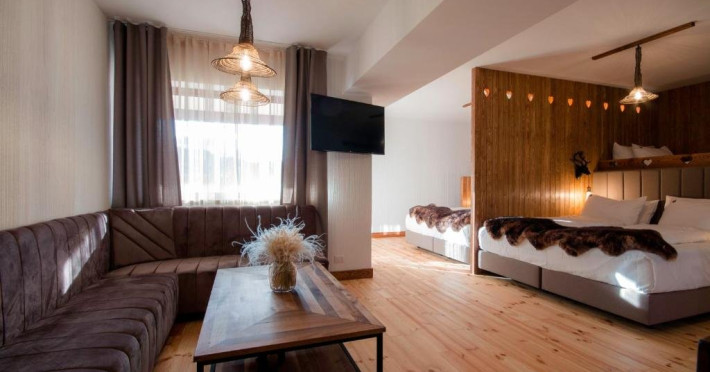 HANUL BUCOVINEI este situat in inima Bucovinei, intr-un cadru natural de poveste din judetul Suceava, Hanul Bucovinei ofera o evadare autentica departe de agitatia orasului. Inconjurat de dealuri line, paduri si aer curat de munte, locatia imbina linistea naturii cu farmecul traditiilor locale. DOTARI SI SERVICII: Hanul Bucovinei este un hotel de 4 stele situat in inima Bucovinei, creat pentru confort, rafinament si experiente autentice. Restaurantul Hanului Bucovinei transforma gatitul pe jar intr-o adevarata arta, oferind experiente culinare autentice, in care aromele intense si gustul desavarsit al preparatelor creeaza momente memorabile. Meniul include 71 de specialitati atent pregatite, iar restaurantul dispune de 142 de locuri, intr-un ambient elegant si primitor. Stilul vestimentar recomandat este casual elegant. Program: Vineri - Sambata: 08:00 - 23:00 Duminica - Joi: 08:00 - 22:00 Specific: specialitati locale si preparate autentice Experiente: seri tematice si degustari de vin Oaspetii beneficiaza de 105 locuri de parcare in curtea complexului, pentru un acces facil si confort sporit. Pune la dispoziti turistilor statii de incarcare pentru masini electrice si parcari moderne, pentru un sejur fara griji. Oaspetii beneficiaza de internet in intreaga locatie, servicii de curatatorie, mic dejun inclus in toate pachetele de cazare si room service prompt, pentru momente de rasfat in deplin confort. Hotelul detine si o sala de evenimente cu un design captivant inspirat din natura si o terasa privata cu vedere catre gradina Hanului, este locul ideal pentru momente speciale. Cu o capacitate de aproximativ 300 de persoane, salonul este perfect pentru nunti, botezuri, evenimente corporate sau petreceri tematice, oferind un cadru elegant si memorabil pentru orice ocazie. Restaurant Kimpolung situat la demisolul hanului, restaurantul nostru ofera o experienta culinara aparte, unde preparatele traditionale romanesti gatite pe jar se imbina armonios cu influente din bucataria internationala. La Ponton este unul dintre cele mai speciale spatii din cadrul complexului Hanul Bucovinei. Amplasat deasupra iazului, ofera o atmosfera relaxanta si pitoreasca, in mijlocul naturii. Este locul ideal pentru cununii civile, festivitati, cursuri festive sau cine romantice, intr-un cadru elegant si memorabil. Peisajele si linistea din jur creeaza decorul perfect pentru momente cu adevarat speciale. La Bordei aduce farmecul Bucovinei de altadata, fiind un spatiu autentic unde traditia prinde viata. Accesul se face pe o alee pitoreasca, iar la intrare te intampina elemente din lemn sculptate manual de mestesugari locali. Foisorul este complet echipat pentru gatit traditional: protap, cuptoare cu flacara naturala, cuptor de paine, ceaune si afumatoare. Unul dintre punctele forte este gatitul live, care creeaza o atmosfera calda si autentica, perfecta atat pentru evenimente private, cat si pentru intalniri relaxate cu prietenii. Spatiul poate gazdui evenimente pe tot parcursul anului, inclusiv in sezonul rece. DOTARI CAMERE: Camera dubla Deluxe cu cada si balcon privat, cu o suprafata de aproximativ 45 mp, pentru 2 oaspeti, cu pat matrimonial king size (160x200 cm) si baie cu dus, ofera Wi-Fi gratuit, aer conditionat, TV, mini-bar, espressor Nespresso, seif, room service. Camera dubla Deluxe Twin cu dus si balcon privat, cu o suprafata de aproximativ 45 mp, cu 2 paturi single si baie cu dus, ofera Wi-Fi gratuit, aer conditionat, TV, mini-bar, espressor Nespresso, seif. Camera dubla Twin, cu o suprafata de aproximativ 42 mp, cu 2 paturi twin si baie privata cu dus, ofera Wi-Fi, aer conditionat, TV, minibar, espressor Nespresso. Nu au balcon. Apartament QAD Twin cu balcon privat, cu o suprafata de aproximativ 54 mp, cu 4 paturi single si baie privata cu dus. Ofera Wi-Fi gratuit, aer conditionat,TV, room service, masina de cafea si ceai. Apartament QAD, cu o suprafata de aproximativ 64 mp, cu 2 paturi matrimoniale super king-size (160x200 cm) si baie privata cu dus.Ofera Wi-Fi gratuit, aer conditionat, TV, espressor Nespresso. Nu au balcon. Studio Dublu Deluxe, cu o suprafata de aproximativ 56 mp, are 2 camere, pat matrimonial, canapea extensibila si 2 bai, ofera Wi-Fi gratuit, aer conditionat, acces la facilitati spa, balcon privat spatios cu vedere panoramica asupra Campulungului. Apartament QAD decomandat cu balcon privat, cu o suprafata de aproximativ 50 mp, avand 2 paturi matrimoniale super king-size si baie privata, ofera Wi-Fi gratuit, aer conditionat, masina de cafea. Camera dubla Deluxe cu cada, cu o suprafata de aproximativ 46 mp, cu pat matrimonial si baie cu geam si vedere catre camera. Ofera Wi-Fi gratuit, aer conditionat, TV, masina de cafea si acces la facilitati spa. Balcon privat spatios cu vedere panoramica asupra Campulungului, ideal pentru relaxare in cadru montan. Camera dubla Standard,cu o suprafata de aproximativ 42 mp, cu pat matrimonial si baie privata cu dus. Ofera Wi-Fi gratuit, aer conditionat, TV, balcon.