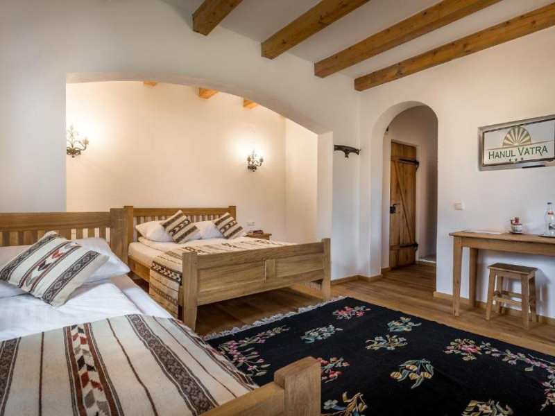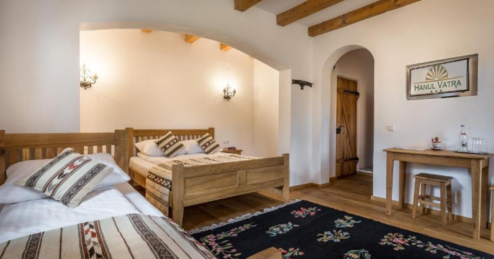 Hanul nostru ofera 14 camere confortabile (35-39 locuri de cazare), fiecare dotata cu WiFi , TV smart si baie privata. Dispunem de camere twin, duble, triple si un apartament spatios, perfecte atat pentru familii si grupuri, cat si pentru calatori individuali sau business.