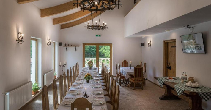 Pozitionat intr-un cadru natural spectaculos, cu priveliste spre padure si un parau de munte, Hanul Vatra este locul ideal pentru: Weekend-uri relaxante in natura Vacante prelungite cu familia Sesiuni de lucru remote intr-un cadru inspirational Evenimente private si team building-uri Seminarii si conferinte in sala noastra dedicata (24 locuri)