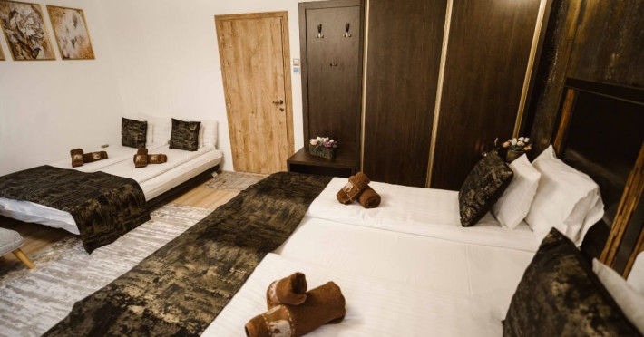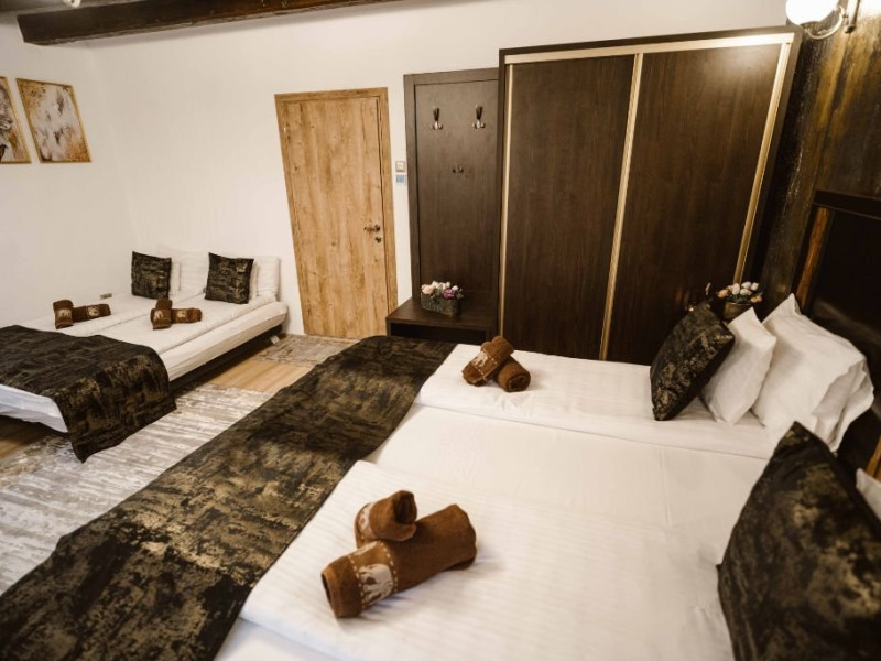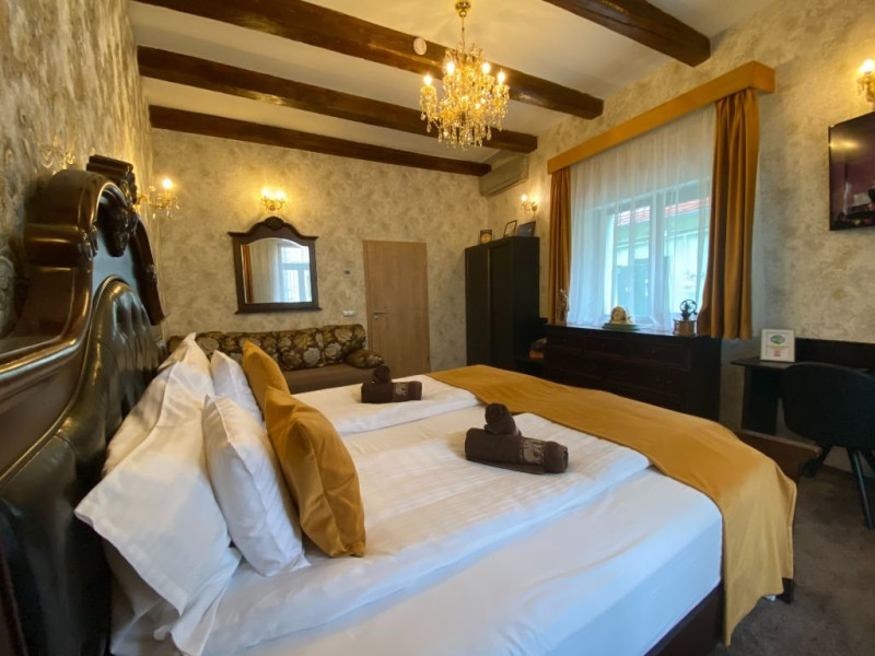 Mobilierul este din lemn si SMART TV-ul are ecran plat cu canale prin cablu cu conexiune la internet. Patul king-size este fabricat din lemn de arbore de cauciuc, iar generozitatea dimensiunilor saltei de 2 metri x 2 metri iti va oferi cel mai odihnitor somn posibil.
