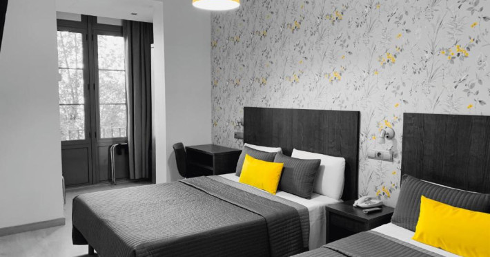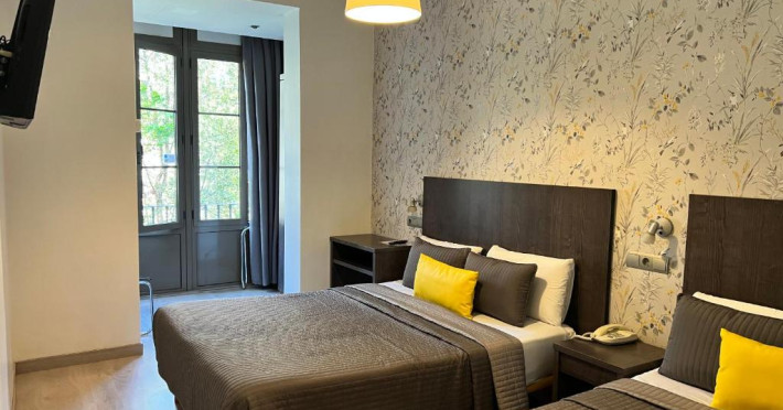 Proprietatea oferă camere single, duble, duble superioare, triple și suite/familiale pentru pană la 4 persoane, unele dintre ele cu vedere la stradă cu balcon sau la faimoasele grădini interioare din planul arhitectural al cartierului Ensanche din Barcelona, Plà Cerdà, iar altele sunt camere interioare.