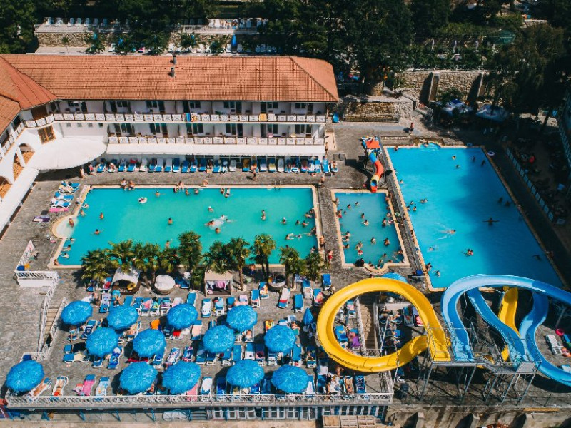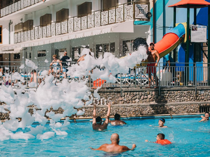 FACILITATI UNITATE Piscinele exterioare ale hostelului, in numar de trei, cu apa termosulfuroasa: doua semiolimpice si una pentru copii, prevazute cu statii de filtrare si clorinare permanenta.Piscina interioara recent renovata, saunele aduc un plus pentru relaxarea turistilor. Piscinele exterioare functioneaza doar in sezonul cald!