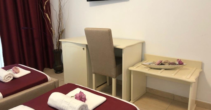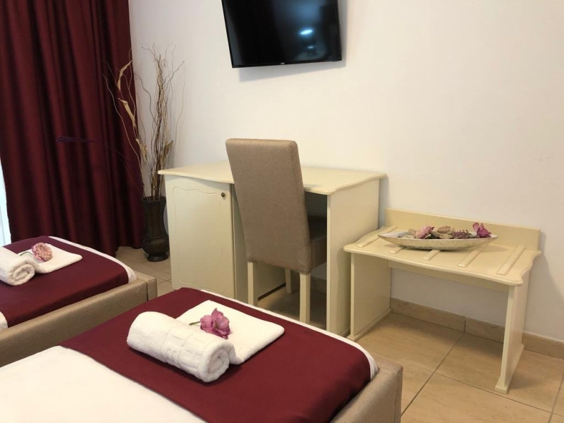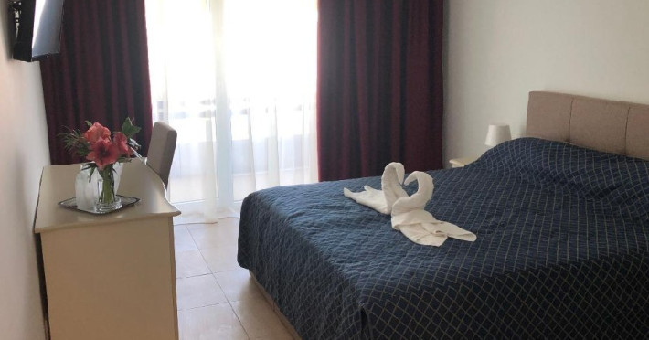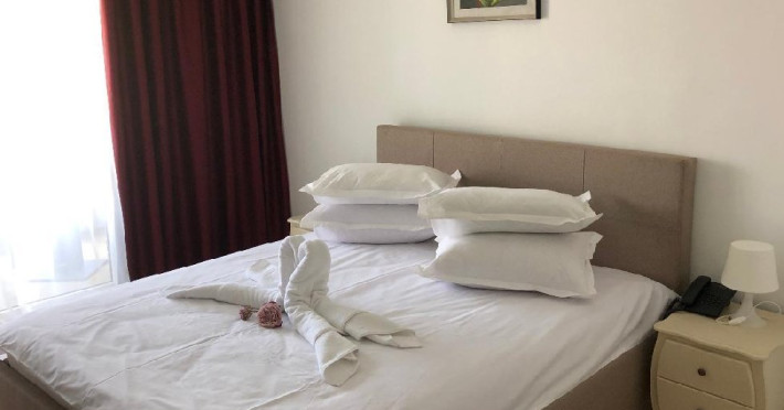 Camerele matrimoniale sunt dispuse pe etajul 1, 2, 3 si au o suprafata utila de 25 mp. Camerele duble twin sunt situate pe parter, etajele 2 si 3 si au o suprafata utila de 20 mp. Camerele duble cu pat suplimentar au un pat dublu si un pat suplimentar .Camerele sunt dispuse pe etajele 1, 2, 3 si parter, suprafata utila este de 25 mp. Camerele triple sunt situate la parter. Camera matrimoniala de lux este compusa din living cu canapea extensibila, dormitor cu pat matrimonial si balcon, fara usa intre cele doua incaperi. Apartamentul este compus din dormitor cu pat matrimonial, living cu canapea extensibila, au o suprafata utila de 50 mp si doua balcoane.