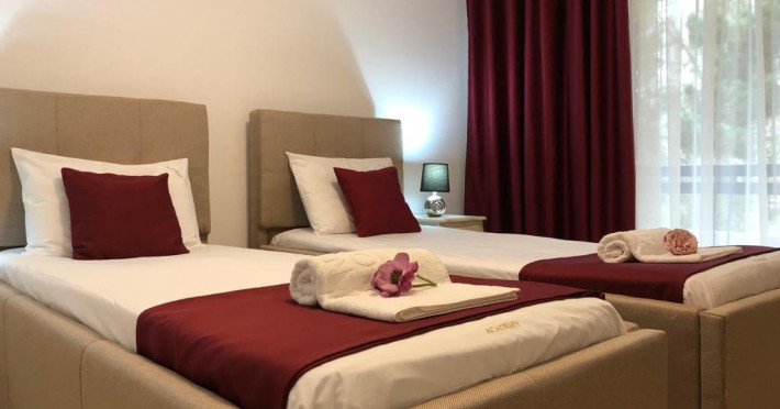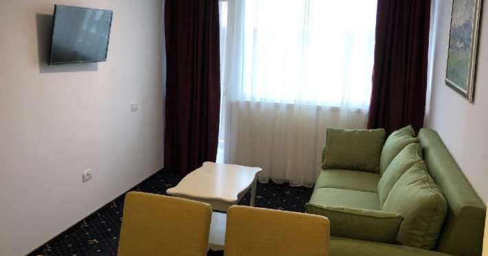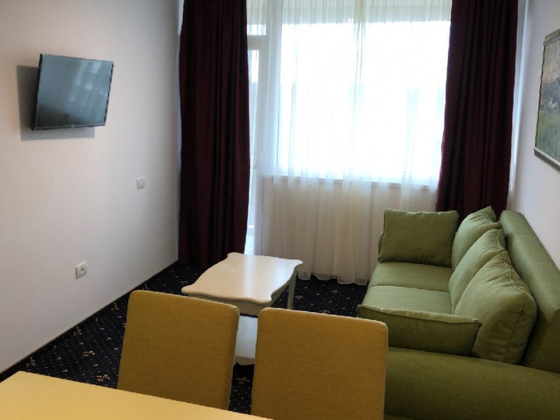Apartamentele au o suprafata de 44 m2, doua balcoane, sunt luminoase si confortabile, dispun de living cu chicineta, canapea extensibila, telefon, televizor LCD minibar, birou, precum si un dormitor cu pat dublu matrimonial.