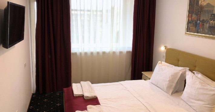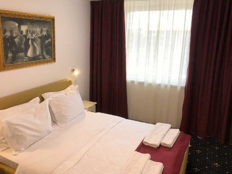 Dotari camere: mocheta, minibar, telefon, birou, televizor LED, internet gratuit wi-fi, balcon la camerele de la etaj, aer conditionat, baie cu dus, uscator de par. Camerele duble au o suprafata de 22 m2. Camerele de la parter sunt de tip TWIN si nu au balcon in dotare.