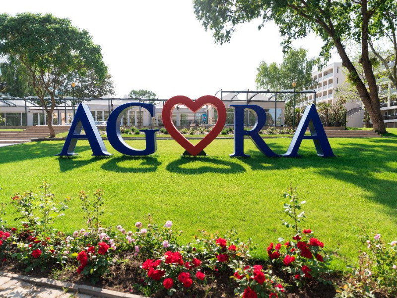 INFORMATII GENERALE AGORA Hotel***, cunoscut in trecut sub denumirea de Hotel ROMANTA, si-a redeschis portile dupa ce a beneficiat in toamna 2018 - primavara 2020 de ample lucrari de renovare si modernizare, in acest moment oferind turistilor sai interioare confortabile, amenajate modern la cel mai inalt standard. Inconjurat de o superba oaza de vegetatie de circa 10.000 mp, parte a rezervatiei naturale Padurea Comorova, AGORA Hotel*** ofera celor ce ii trec pragul, multiple facilitati pentru relaxare, fiind locul ideal pentru o vacanta minunata si multiple facilitati pentru relaxare. FACILITATI UNITATE Dotari generale: 6 nivele (parter si 5 etaje); restaurant cu o capacitate de 500 locuri; receptie spatioasa si luminoasa, deschisa 24/24, dotata cu aer conditionat, televizor LED, free WI-FI; lobby bar; parcare privata monitorizata video (capacitate 160 locuri, cost 10 Lei/ zi autoturism); parc cu zona verde; spatiu de joaca amenajat pentru copii; sala de sport; teren de baschet, teren cu tatami; piscina exterioara; seif la receptie; camera pentru bagaje.