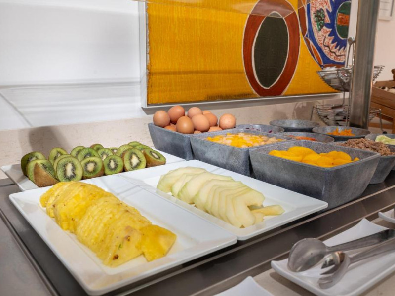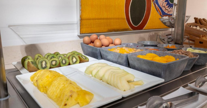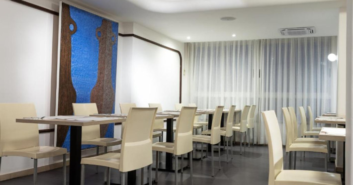 Restaurantul servește mancăruri spaniole à la carte și oferă vedere la mare. La bar sunt disponibile tapas și pinchos.