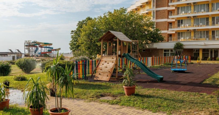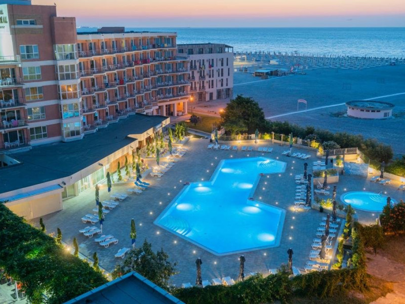LOCALIZARE Hotelul este situat in nordul statiunii, pe plaja. Plaja: larga, nisipoasa cu intrare lina in mare.