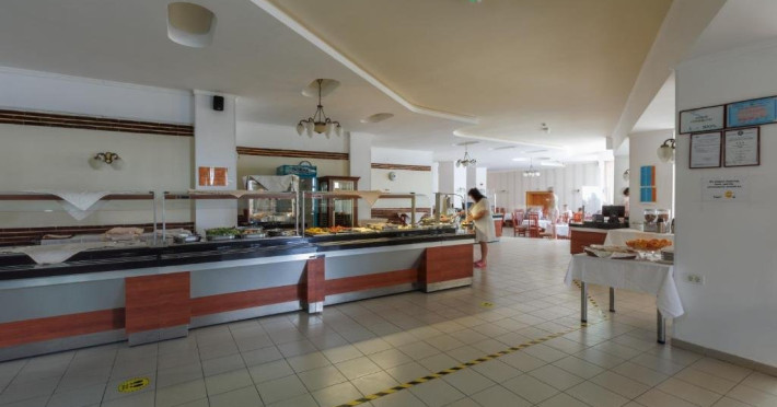 SERVICII MASA Se acorda in unitatea Restaurant Amiral categoria I, micul dejun in sistem bufet suedez; pranzul si cina se servesc in sistem fisa cont- linie de autoservire sau Restaurant Comandor in sistem fisa cont- a la carte. Micul dejun se organizeaza in regim bufet pentru un minim de 30 de persoane inscrise. Daca sunt mai putin de 30 de persoane inscrise, clientii vor servi micul dejun in regim a la carte. Produsele oferite la micul dejun se vor consuma doar in incinta restaurantului, fiind interzisa scoaterea produselor din salonul restaurantului.