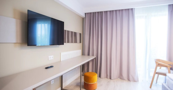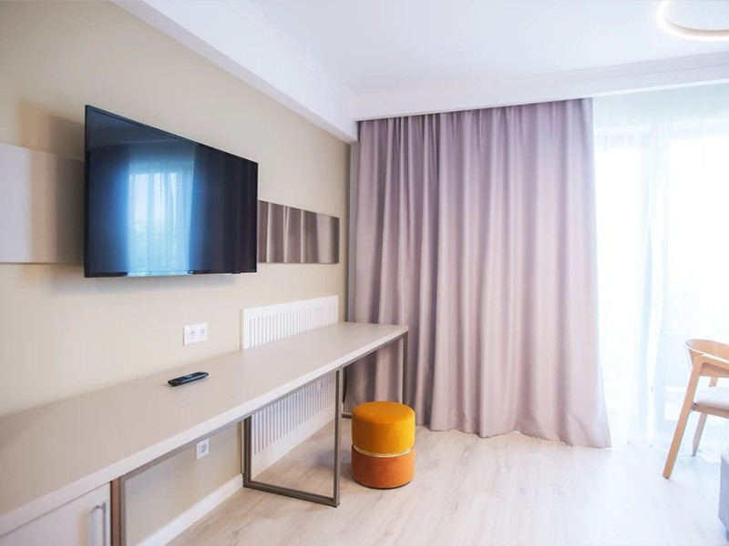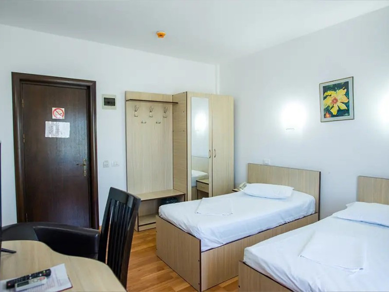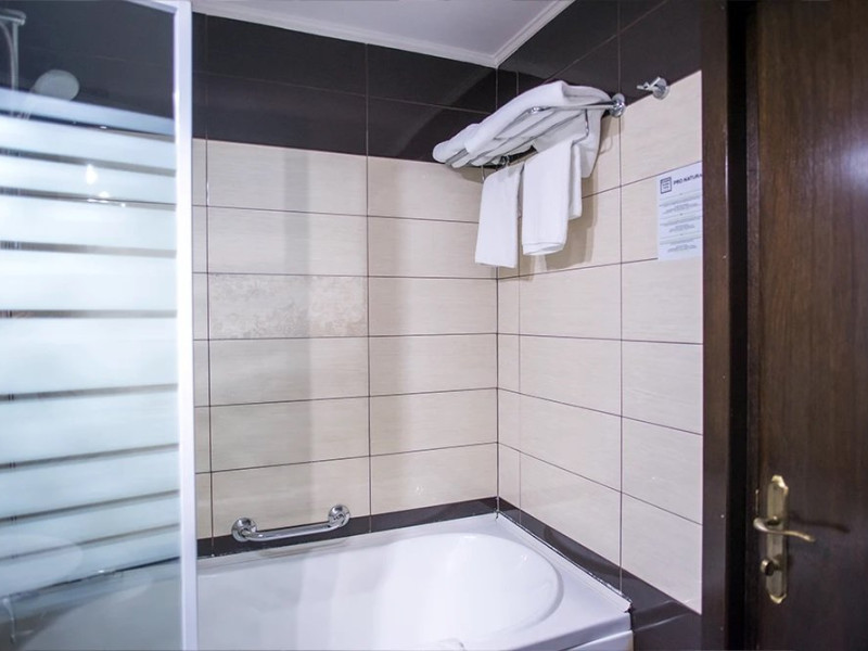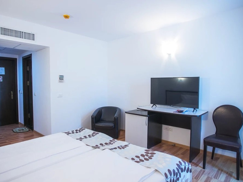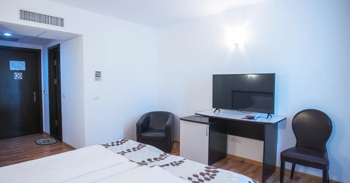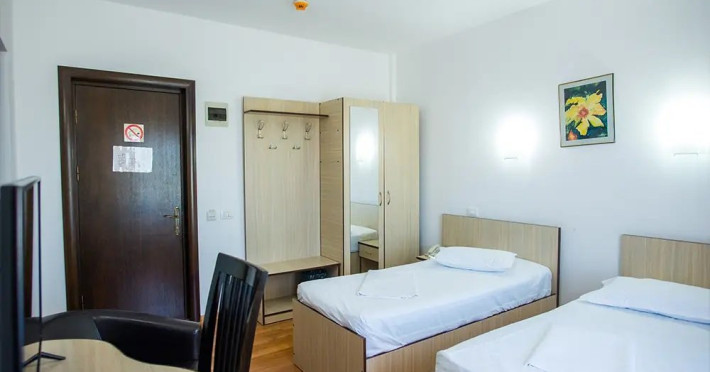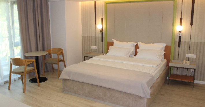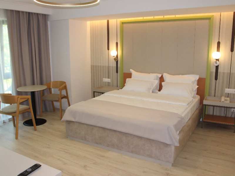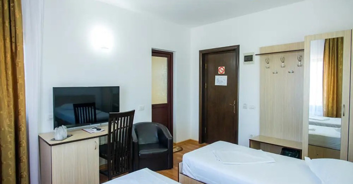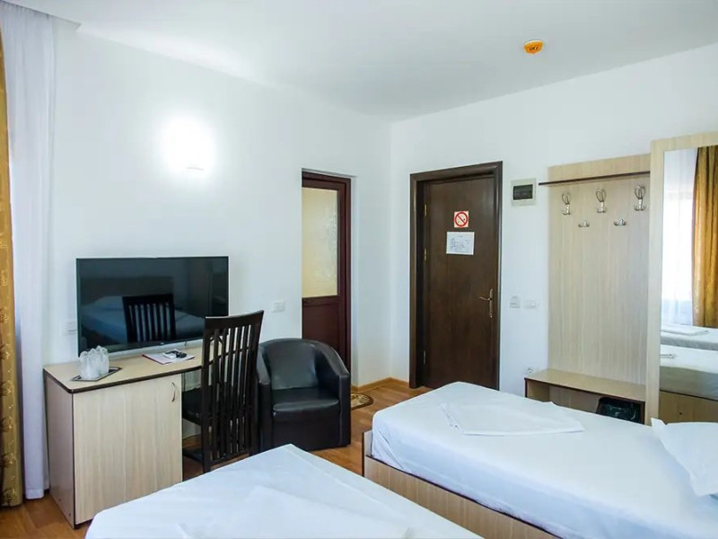 DESCRIERE CAMERE Camere Duble: 39 Dotari camere: aer conditionat, TV cu televiziune prin cablu, mini-bar, WI-FI gratuit in tot complexul turistic, baie proprie cu cada/cabina dus, uscator de par si balcon cu mobilier (o singura camera nu beneficiaza de aceasta facilitate), telefon. Unitatea a receptionat in toamna anului 2022 un corp nou de hotel (Corp C), marindu-si capacitatea de cazare cu 42 locuri in camere duble matrimoniale, dispuse pe 3 nivele. Camerele sunt dotate cu pat matrimonial, sistem de aer conditionat centralizat, balcon, baie cu dus walk-in.