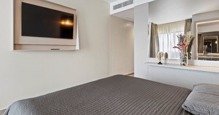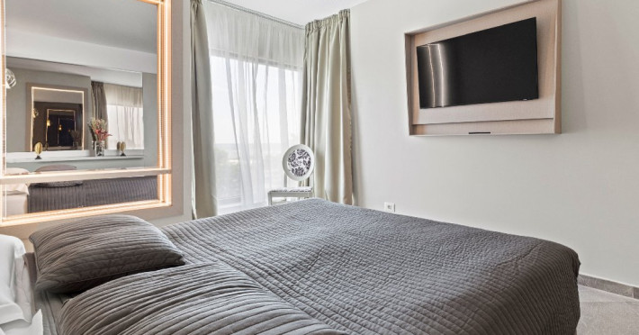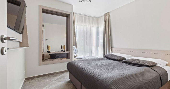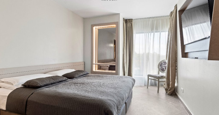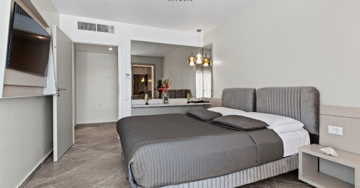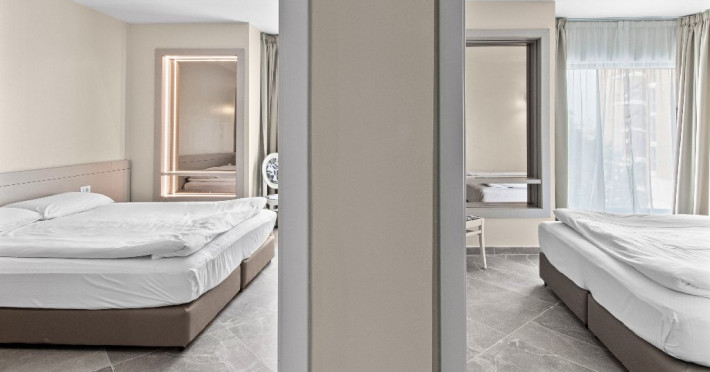 Camerele tip Suita dispun de 2 camere cu intrare separata de un hol comun, ambele cu pat matrimonial 160x200 cm si o baie comuna Este recomandata pentru structura maxima de 4 adulti si 1 copil 0-11.99 ani. Structura maxim acceptata in camera este pentru 2 adulti si 2 copii (0-6.99 ani si 7-11.99 ani). In acest caz, titularii rezervarii isi asuma un eventual disconfort datorat de spatiul limitat al camerei.