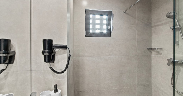 DESCRIERE CAMERE Dotari camere: complet renovate, baie cu dus, televizor LCD, minibar, birou, sistem de climatizare, uscator de par, produse cosmetice, fotoliu, internet wi-fi. Au vedere laterala la mare si statiune si NU au balcon.