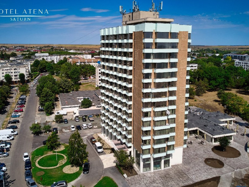 FACILITATI UNITATE Hotel Atena dispune de 208 camere duble si 13 suite distribuite pe 13 nivele. Dotari generale: restaurant cu o capacitate de 400 locuri, terasa, lobby bar, loc de joaca pentru copii, receptie cu program non-stop, lift, Wi-Fi gratuit, parcarea se ofera gratuit in limita disponibilitatilor.