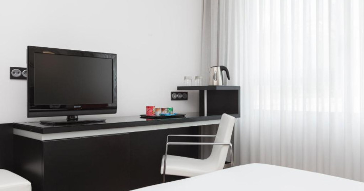 Toate camerele de la Axor Barajas sunt dotate cu aer condiționat, un televizor inteligent de 43 de inci cu Chromecast incorporat și podele din lemn. Camerele spațioase și luminoase sunt, de asemenea, izolate fonic și incălzite. Sunt disponibile un seif, un minibar și un birou.