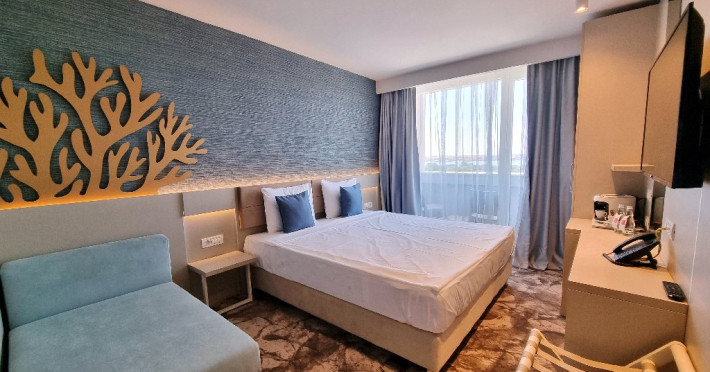FACILITATI UNITATEResortul Bacolux Koralio este dotat cu 212 camere si apartamente, restaurant si terasa, lobby bar, 2 sali de conferinta, loc de joaca pentru copii exterior si interior, parcare. De asemenea, oaspetii isi pot petrece timpul in zona de Aqua Fun, care include 3 piscine exterioare, una dedicata adultilor de dimensiuni semi olimpice si 2 piscine pentru copii, precum si 3 tobogane cu apa. Terasa Aqua Fun este locul in care in fiecare seara exista un program de divertisment dedicat atat copiilor cat si adultilor si unde se pot servi bauturi a la carte. Pentru cei mici este disponibil spatiu de joaca, precum si o echipa de animatori care organizeaza ateliere de creatie, momente artistice si de divertisment.