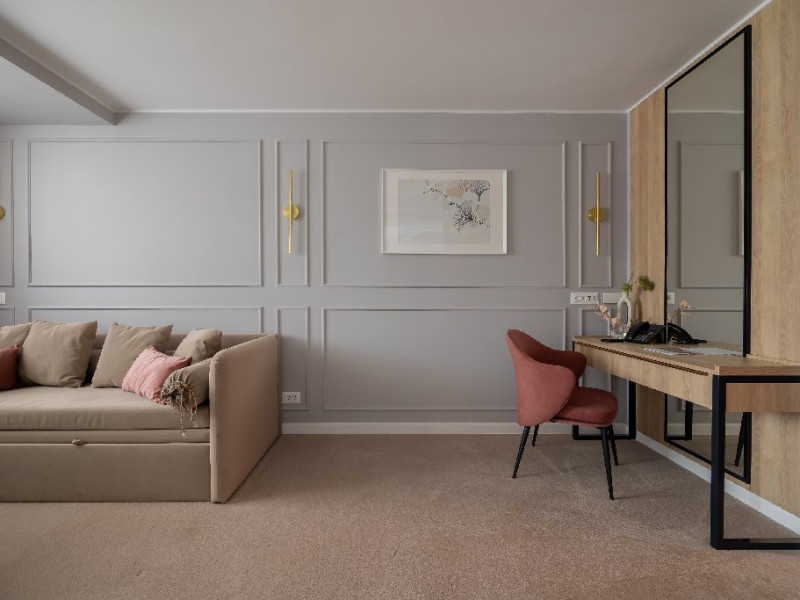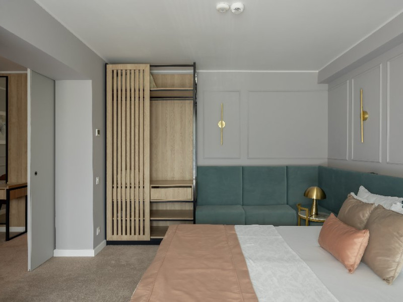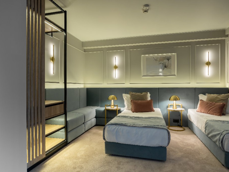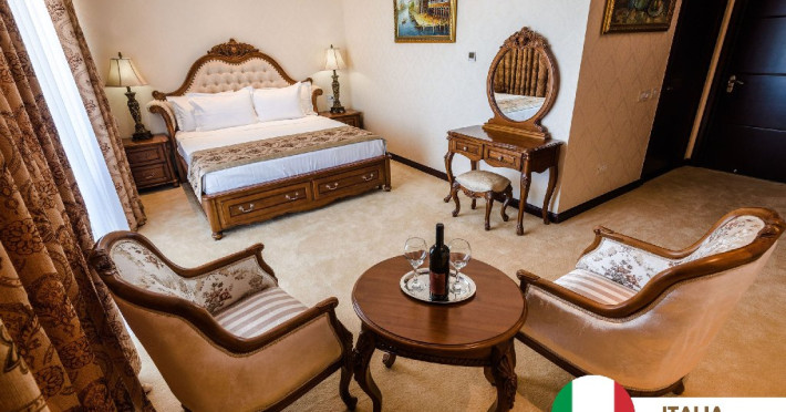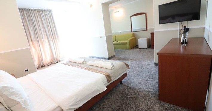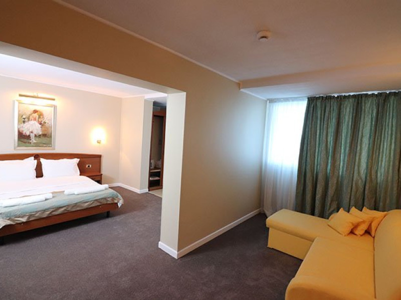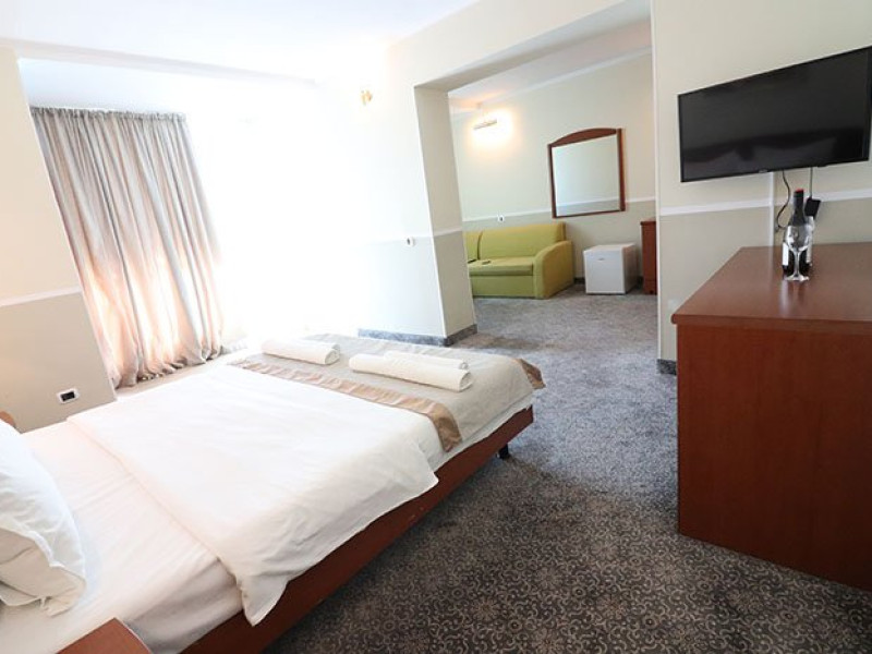 Dotari camere:aer conditionat, TV, minibar, seif, baie cu dus -(cabina de dus), internet -wireless, uscator de par, telefon, sistem de alarma in caz de incendiu/ detectoare de fum, halat si papuci de baie, priza pentru aparat de barbierit, oglinda cosmetica, telefon, birou de lucru.