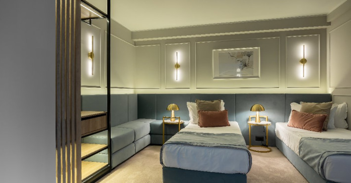 Apartament Deluxe Vedere Mare 5* : China, Franta Apartamentul Vedere Mare permite acomodarea a maxim 2 persoane: 2 adulti sau 1 adult cu un copil. Apartamentul China - cel mai mare apartament; are o suprafata de 68 mp + balcon 24 mp. Apartamentul Franta - are o suprafata de 67 mp + 2 bai (14 mp/5 mp) + 2 balcoane de 24 mp. Spatiile de cazare au vedere mare, pat dublu extra-large, baie dotata cu hidromasaj, radio, jacuzzi, sauna.