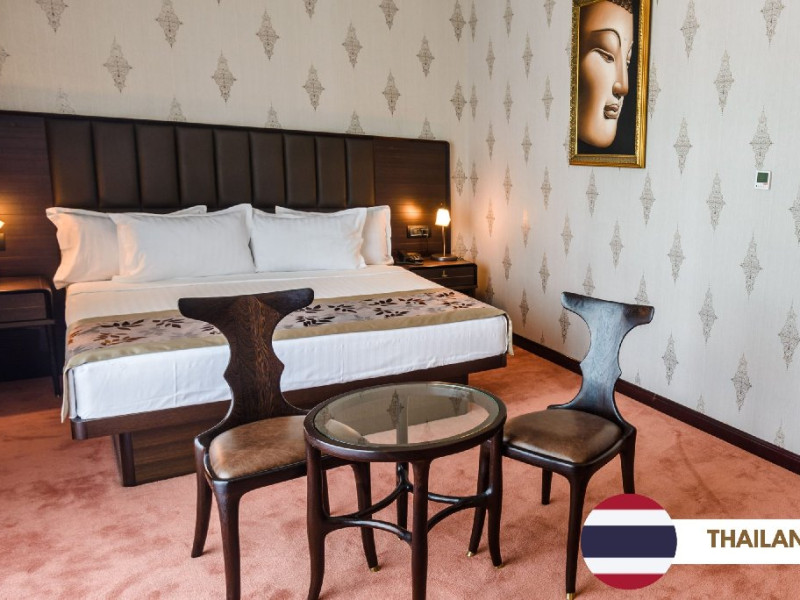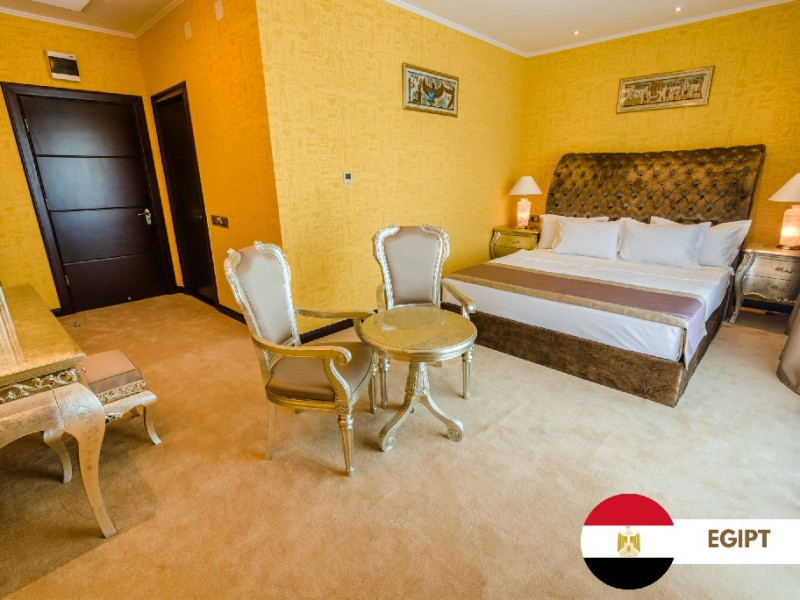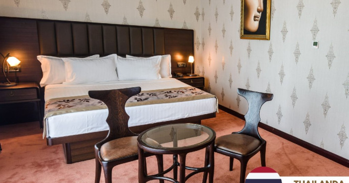 Camera Dubla Deluxe Standard 5* : Egipt, Thailanda, Turcia, Indonezia si Grecia Au o suprafaa de 32 mp si sunt prevazute cu un balcon de 12 mp. Spatiile de cazare au vedere standard spre gradina, pat dublu extra-large, baie dotata cu hidromasaj, radio, jacuzzi.
