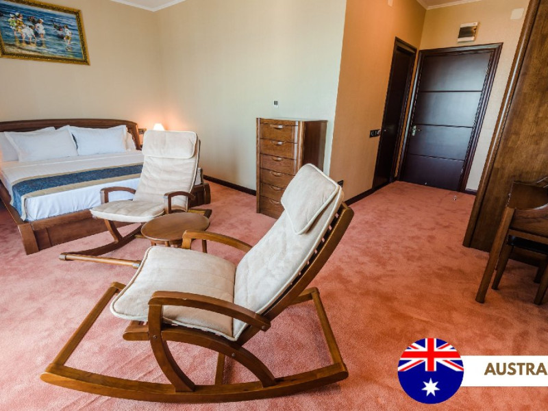 Camera Dubla Deluxe Vedere Mare 5* : Romania, Italia, India, Anglia, Australia, Iran Au o suprafaa de 32 mp si sunt prevazute cu un balcon de 12 mp. Spatiile de cazare au vedere mare, pat dublu extra-large, baie dotata cu hidromasaj, radio, jacuzzi.