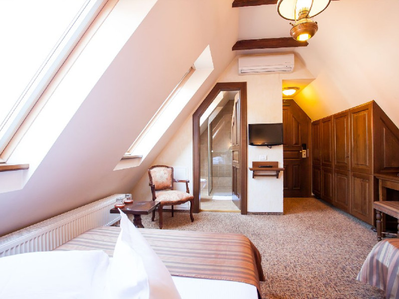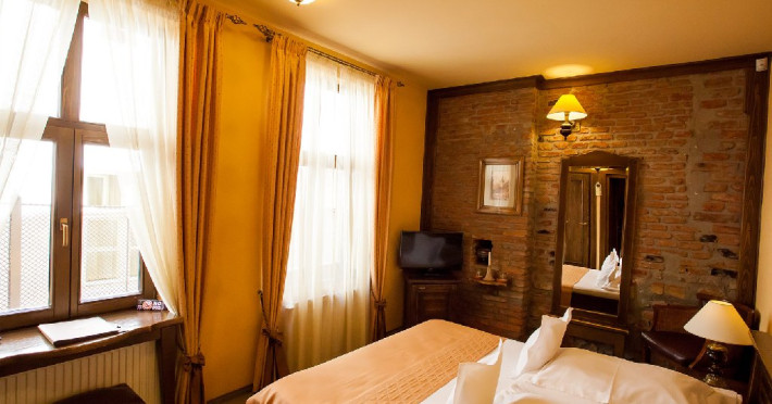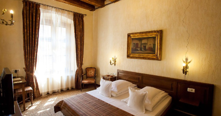 INFORMATII GENERALE Hotel Bella Muzica este amplasat intr-o cladire veche de 400 de ani, cu arhitectura de inspiratie neoclasica, complet renovata si amenajata pentru noua sa destinatie, totodata pastrand elementele arhitecturale care i-au asigurat farmecul de-a lungul secolelor. Asezat in centrul istoric al orasului Brasov chiar in Piata Sfatului, hotelul Bella Muzica va asteapta sa petreceti un sejur deosebit intr-o ambianta incarcata de istorie.