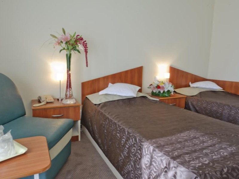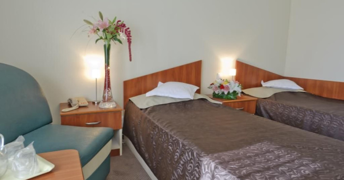 Are o capacitate de cazare de 312 locuri repartizate in 6 apartamente cu dormitor si living, 30 camere duble matrimoniale si 120 camere duble twin. Toate camerele sunt clasificate la 3 stele, avand mobilier nou, tv, cablu tv, mini-bar, mobilier nou si baie proprie. Camerele situate la etajele 1 si 6 sunt fara balcon. Restaurantul dispune de 400 de locuri.