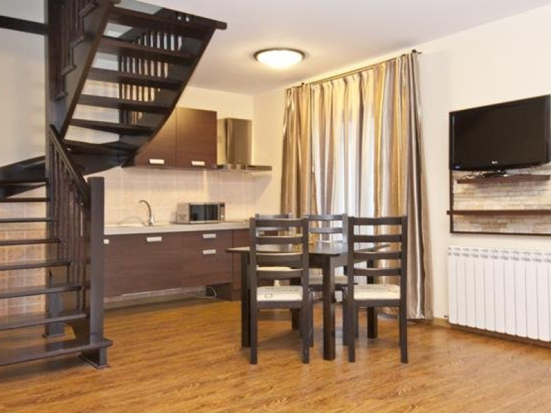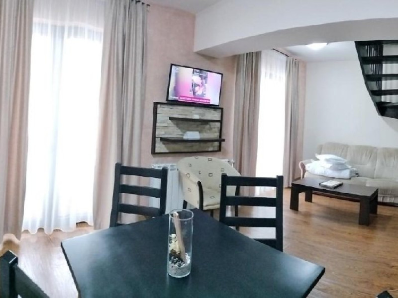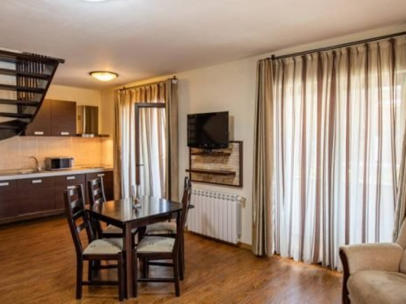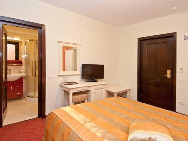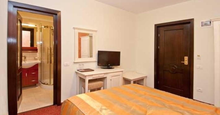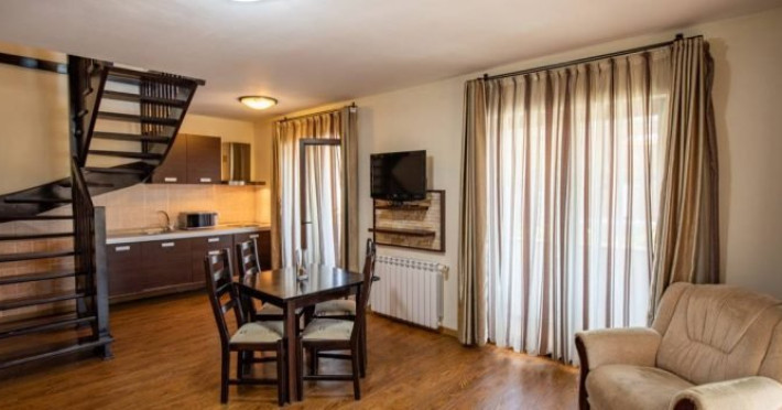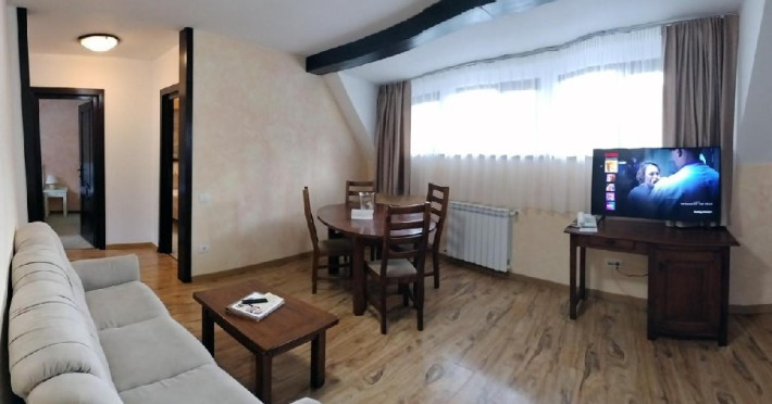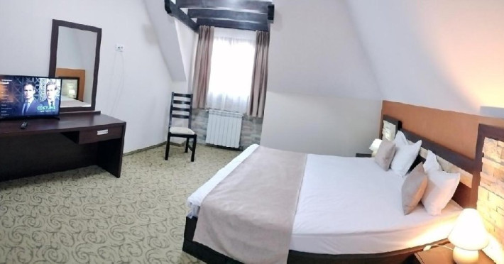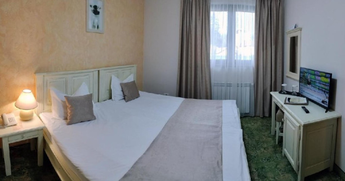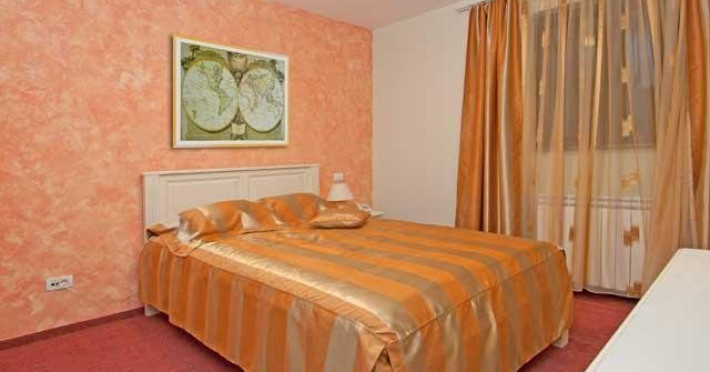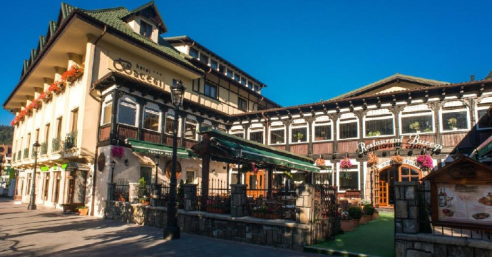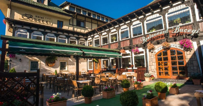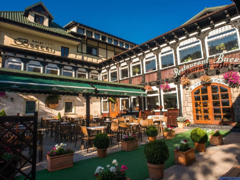 INFORMATII GENERALE Hotelul Bucegi este situat in centrul orasului Sinaia. Pe timp de iarna, paradisul sporturilor zapezii este statiunea Sinaia. Se pot practica, pe partiile amenajate, schi fond, schi alpin, schi randonee, schi extrem si snowboard. Pentru cei care nu au incercat pana acum si vor sa experimenteze din placerile schiului scolile de schi locale va vor asigura pregatirea necesara. DESCRIERE UNITATE DE CAZARE Hotelul Bucegi este locul in care totul e dus la cel mai inalt nivel al rafinamentului. Alege sa fii nobil pentru o saptamana, pentru un week-end sau macar pentru o seara. FACILITATI UNITATE Toate camerele sunt dotate cu televiziune prin cablu, internet wireless, minibar, telefon. Parcare proprie - serviciu gratuit pentru clienti, in limita locurilor disponibile. DESCRIERE CAMERE - 10 camere duble (6 twin+ 4 matrimoniale) - 7 apartamente clasice cu living, dormitor si baie proprie (5 dintre ele au si bucatarie) - 4 apartamente executive din care: 1 apartament cu living, bucatarie, baie proprie si 2 dormitoare matrimoniale; 3 apartamente cu living, bucatarie, baie proprie si 2 dormitoare(1 matrimonial si 1 single).LOCALIZARE Hotelul Bucegi este situat in centrul orasului Sinaia. ATRACTII TURISTICE Dintre monumentele istorice puteti vizita: Castelul Peles, construit intre 1875 - 1883 in stil german renascentist, cu elemente gotice; Manastirea Sinaia, intemeiata intre 1690 - 1695 de Spatarul Mihail Cantacuzino; Casa Memoriala George Enescu etc. POLITICI Nu sunt permise animalele de companie. SERVICII DE MASA Se acorda in restaurantul Bucegi. FACILITATI COPII Copiii mai mari de 6 ani se pot caza in apartament. FACILITATI EVENIMENTE Sala de conferinte cu o capacitate maxima de 30 de persoane (in aranjament teatru) - echipata complet. Sala are iluminat natural, acces internet wireless si va asigura instrumentele necesare pentru intalniri si prezentari.