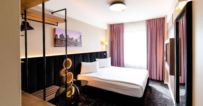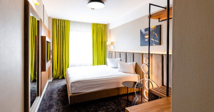 DESCRIERE CAMERE Camerele si apartamentele hotelului ofera acces gratuit la internet WiFi si TV digital. Toate camerele au baie privata cu dus, uscator de par, aer conditionat, articole de toaleta, halat si papuci, minibar. Tipuri de camera: camere duble business.
