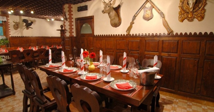 Inima Cabanei Vanatorilor se afla practic in restaurantul care se impune prin gastronomia cu specific vanatoresc. Maestrul in Arta Culinara Stefan Bercea, presedinte al A.N.B.C.T (Asociatia Nationala a Bucatarilor si Cofetarilor din Turism Romania) sta la dispozitia oaspetilor cu intreaga sa experienta culinara. FACILITATI UNITATE Turistii au la dispozitie parcare, restaurant cu terasa si crama, sala de conferinte, internet. DESCRIERE CAMERE Camera Dubla dispune de pat matrimonial sau doua paturi twin. Doar cateva camere de la etajele 2 si 3 au balcon. Apartamentul este compus dintr-un dormitor cu pat matrimonial si un living cu canapea extensibila, balcon. Toate camerele au in dotare minibar, televiziune prin cablu, telefon, sistem de acces cu card, uscator de par. LOCALIZARE Hotelul se afla la 1 km de centrul statiunii Predeal, intr-o zona linistita si un cadru natural. ATRACTII TURISTICE Manastirea Predeal, Pestera de Gheata, Canionul Sapte Scari. POLITICI Se accepta animale de companie (contra cost). SERVICII DE MASA Maestrul in Arta Culinara Stefan Bercea, sta la dispozitia oaspetilor cu intreaga sa experienta culinara impreuna cu fiul sau Dragos Bercea - capitanul echipei nationale de bucatari juniori, castigator la numeroase concursuri de arta culinara nationale siinternationale, cel mai tanar participant la Olimpiada gastronomica. FACILITATI COPII In camera dubla se poate adauga maxim un pat suplimentar. FACILITATI EVENIMENTE Hotelul dispune de sala de conferinte.