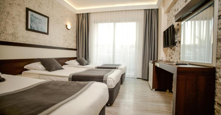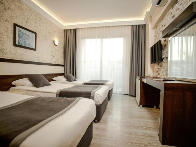 Camerele hotelului Camyuva Beach sunt amenajate cu mobilier modern. Toate au baie privată cu articole de toaletă si uscător de păr. Dotările standard includ si seif.