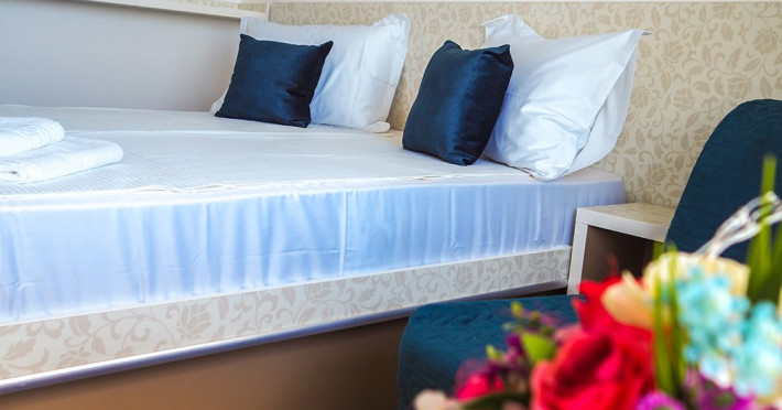 FACILITATI COPII (in camera cu 2 adulti): Intr-o camera dubla se accepta cazarea pentru 2 adulti si 2 copii cu varsta intre 0 si 11 ani. Camerele duble presupun un pat matrimonial cu posibilitatea inchirierii a unui singur pat suplimentar (fotoliu extensibil). Se pot face si exceptii in cazul in care adultii isi dau acordul in scris asupra asumarii spatiului din camera, pentru a nu exista reclamatii ulterioare legate de acest aspect, cu incasarea serviciilor suplimentare corespunzatoare varstei copiilor. Se accepta si cazarea pentru 3 adulti doar in cazul in care se achita un loc intreg pentru cazare si masa pentru a treia persoana adulta. Se va prezenta la receptie copie dupa certificatul de nastere al copiilor.