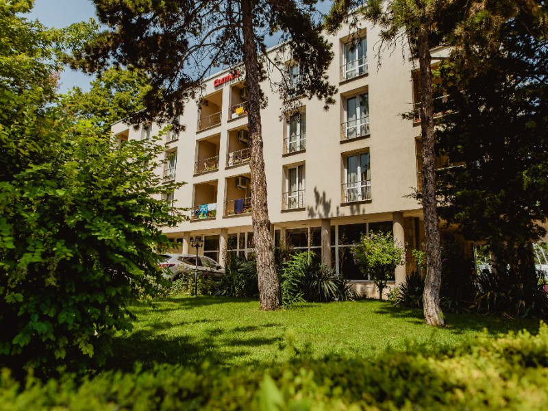 INFORMATII GENERALE Hotel Carmen Eforie Nord ofera un ambient modern si relaxant, conceput pentru a asigura confort deplin pe durata sejurului, atat pentru turisti individuali, cat si pentru familii. Situat in imediata apropiere a falezei din Eforie Nord, in rondul Bellona, hotel Carmen se dovedeste a fi destinatia perfecta pentru sejururi de neuitat. Construit in 1958, hotelul cu o arhitectura mediteraneana a fost recent renovat, devenind spatiul de cazare ideal pentru familiile cu copii care isi doresc sa fie aprope de plaja, dar si pentru cei care doresc o vacanta departe de tumultul statiunii.