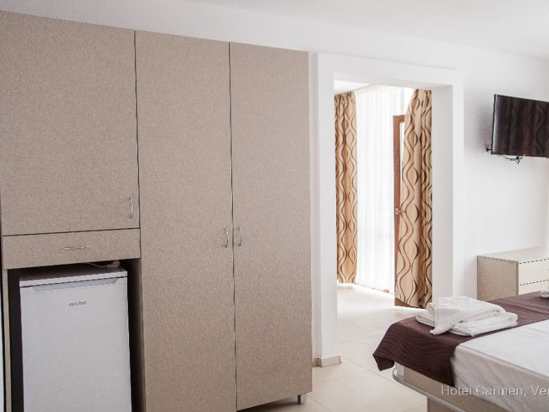 INFORMATII GENERALE Hotelul Carmen 3* (fost Hotel Brandusa) este situat in centrul statiunii Venus, chiar pe promenada cu magazine si la 100 de metri de plaja. Hotelul a fost complet renovat in anul 2018.