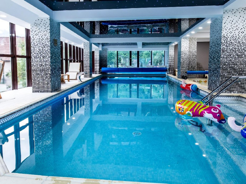 Centrul SPA este dotat cu piscina interioara, piscina pentru copii, sauna umeda, sauna uscata, jacuzzi si salon de masaj.