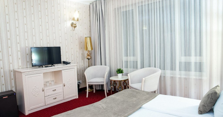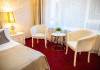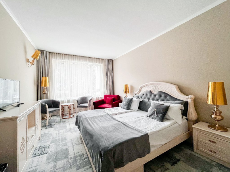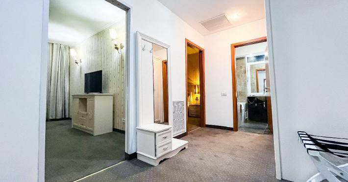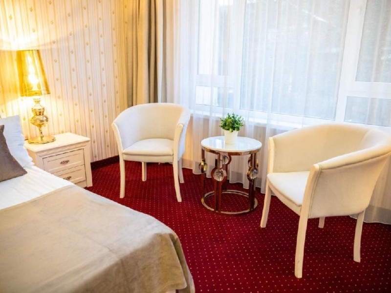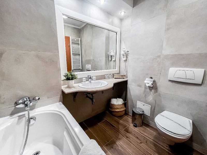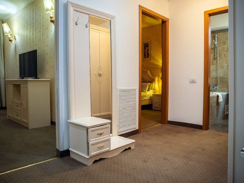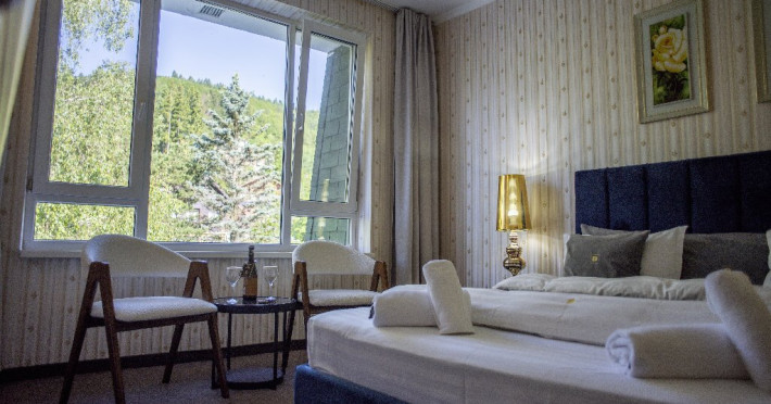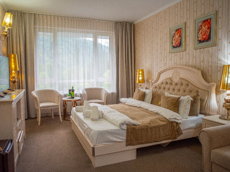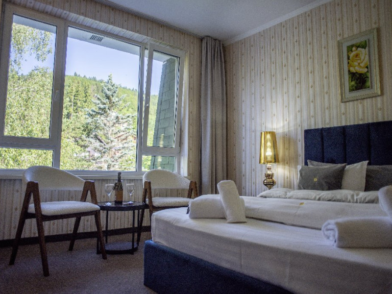 INFORMATII GENERALE Dotat cu 70 de camere, beneficiind de conditii de lux, turistii isi pot petrece cateva zile de vis intr-o statiune montana romaneasca cu traditie. Cele doua cladiri care compun complexul au fost renovate complet, mobilate elegant si dotate cu accesorii de lux in anul 2014, inaugurarea facandu-se in luna decembrie 2014. Situat in centrul orasului Sinaia, accesul la Hotel Carpathia este extrem de facil, facandu-se direct din DN 1. DESCRIERE UNITATE DE CAZARE Hotelul dispune de restaurant, bar, terasa, pastrare obiecte de valoare, mini-centru Spa (piscina acoperita, SPA -sauna, masaj, salina, centru infrumusetare), 3 sali de conferinta. Urmatoarele servicii sunt contra-cost: spalatorie, produse din minibar, mic dejun in camera, room service, parcare. FACILITATI UNITATE Restaurant,bar, terasa, pastrare obiecte de valoare, mini-centru Spa (piscina acoperita, SPA -sauna, masaj, salina, centru infrumusetare), 3 sali de conferinta. DESCRIERE CAMERE Are in dotare 66 camere duble (twin si matrimoniale) si 3 apartamente. Dotari camere: TV, minibar, baie cu dus, internet, uscator de par. LOCALIZARE Situat in centrul orasului Sinaia, accesul la Hotel Carpathia este extrem de facil, facandu-se direct din DN 1. ATRACTII TURISTICE Castelul Foisor, Partiile de ski, Castelul Peles, Castelul Pelisor, Cazinoul Sinaia, Cota 2000, Cota 1400, Manastirea Sinaia, Casa memoriala George Enescu, Muzeul Trenuletelor, Muzeul Rezervatiei Bucegi, Poiana Stanii Regale, Gara Regala. POLITICI La receptie se achita taxa statiune, taxa salvamont si parcarea. Check-in pana la ora 18:00 si check-out pana la ora 12:00. NU este permis accesul cu animale de companie. SERVICII DE MASA Se acorda in restaurantul hotelului, mic dejun bufet si restul serviciilor in sistem fisa cont. FACILITATI COPII Loc de joaca exterior. In camera deluxe se poate adauga maxim un pat suplimentar. FACILITATI EVENIMENTE 3 Sali de conferinta - capacitate maxima/sala de conferinta - 100 locuri.
