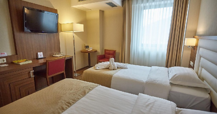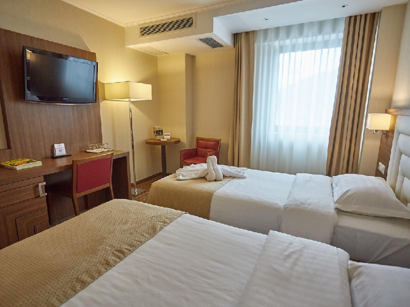 DESCRIERE CAMERE Central Plaza Hotel dispune de 155 de camere elegante si confortabile, decorate intr-un stil modern contemporan. Toate camerele sunt dotate cu internet gratuit, sistem de acces electronic si sistem suplimentar de blocare a usilor, televiziune prin satelit, aer conditionat si incalzire controlate individual, televizor cu ecran LCD, cutie de valori, minibar, linie telefonica. Decorata in tonuri calde de maro si bej, Camera Premier ofera o atmosfera relaxanta, cu toate facilitaile necesare pentru o calatorie de afaceri sau vacanta. Baia este dotata cu dus, uscator de par, halat si papuci de baie. Camera Superior aminteste de confortul intim de acasa, armonizand odihna perfecta pe care ti-o da maiestuosul pat matrimonial cu privelistea incantatoare asupra orasului dezvaluita prin spatiul vitrat generos in care se oglindesc culmile Cozla si Pietricica. Avand o suprafata generoasa Junior Suite inglobeaza, alaturi de spatiul de odihna, o zona de lucru moderna, cu birou, fotolii si internet wireless pentru turistii aflati in calatorie de afaceri. Camera family este varianta ideala pentru familiile care calatoresc impreuna cu copiii, sau pentru o escapada cu prietenii oferind o formula unica de cazare: o camera dubla cu paturi separate impreuna cu o camera single cu pat confortabil, interconectate cu un hol comun.
