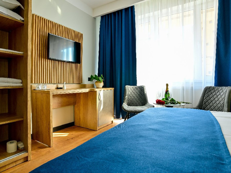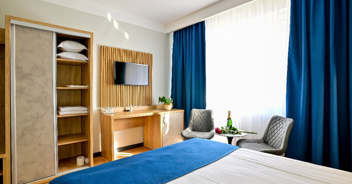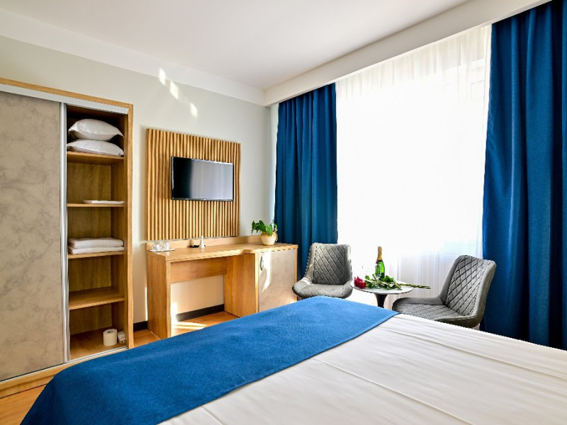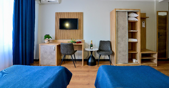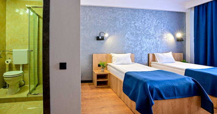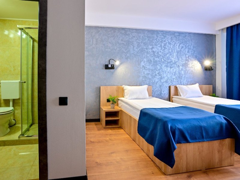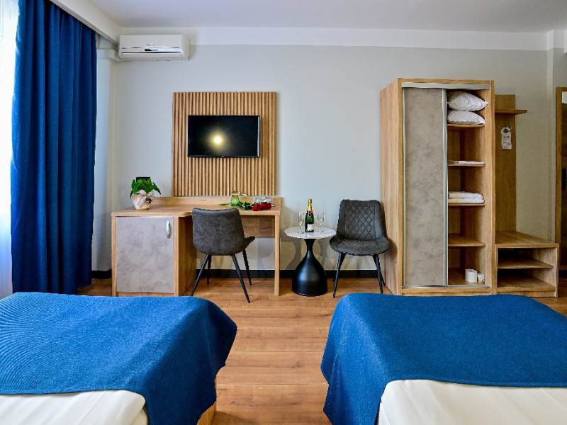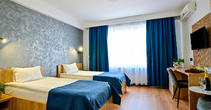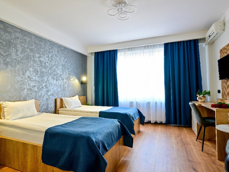 DESCRIERE CAMERE Hotel Class Sibiu va ofera servicii de cazare 3 stele in camere duble matrimoniale, duble twin, duble speciale (triple - cu pat matrimonial si pat single), apartamente cu 2 camere. Dotari camere: aer conditionat, WiFi, TV LCD, minibar, baie cu dus, uscator de par.