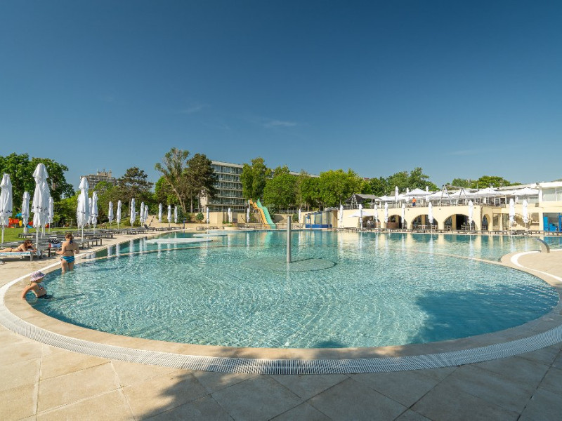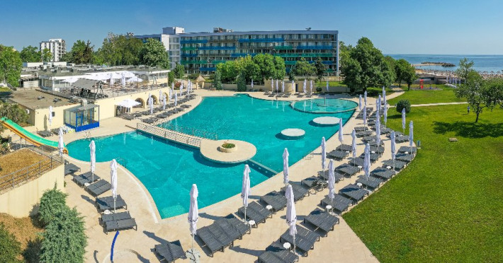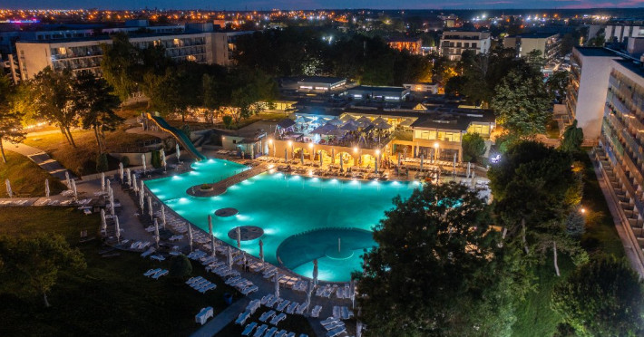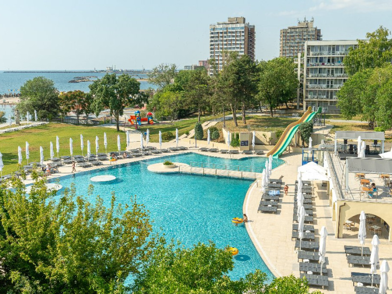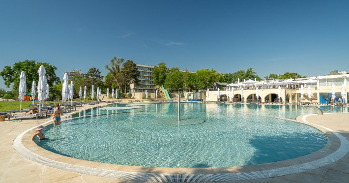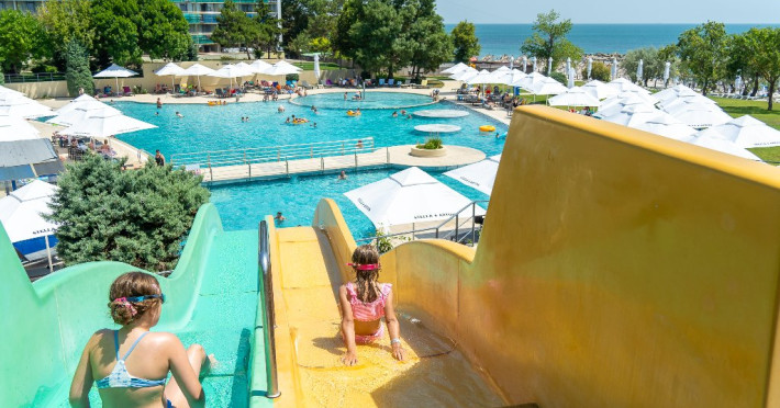 Servicii incluse (all inclusive): Piscina pentru adulti si copii, tobogane acvatice; Umbrele si sezlonguri la piscina in limita locurilor disponibile (alocarea sezlongurilor se face in ordinea sosirii la piscina); Parcare in limita locurilor disponibile; Animatori; Muzica live; Umbrele si sezlonguri la plaja in limita locurilor disponibile (alocarea sezlongurilor se face in ordinea sosirii la plaja); Internet WIFI; Pat bebe tip tarc la cerere, in limita disponibilitatii; Beach Bar All inclusive.