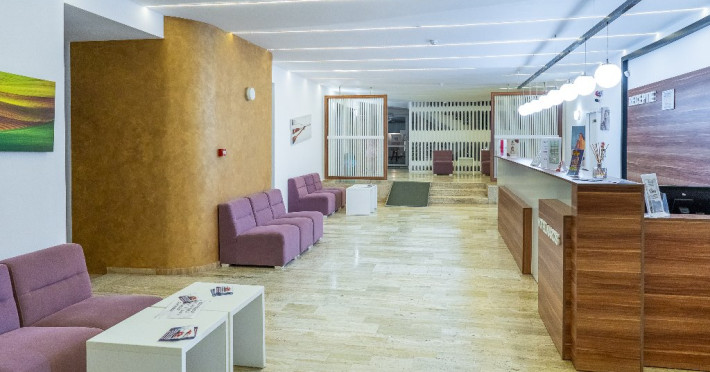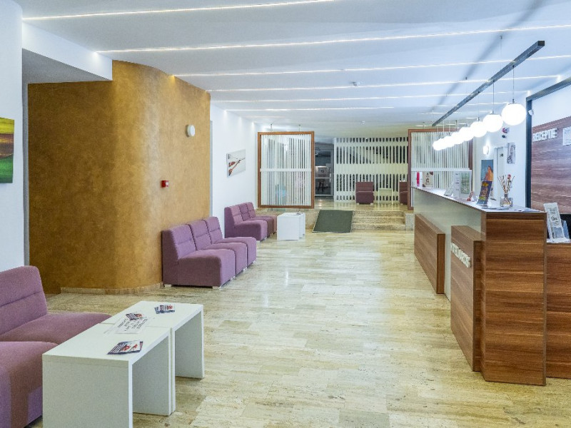 FACILITATI UNITATE Piscine si plaja Piscina principala exterioara este una dintre cele mai frumoase din zona, avand o suprafata de 1500 mp si un design modern. Va puteti relaxa pe sezlongurile confortabile de pe marginea piscinei sau puteti profita plaja privata care este disponibila la iesirea din curtea resortului. Copiii se pot distra atat in piscina special conceputa pentru ei, cu o adancime maxima de 50 cm, cat si la piscina cu tobogane acvatice - 2 canale, pentru cei mari. Oaspetii Safir Blue Resort au la dispozitie in mod gratuit sezlonguri, umbrele si masute la plaja, in limita locurilor disponibile. Plaja privata este situata la aproximativ 50 m si dispune de beach bar gratuit.