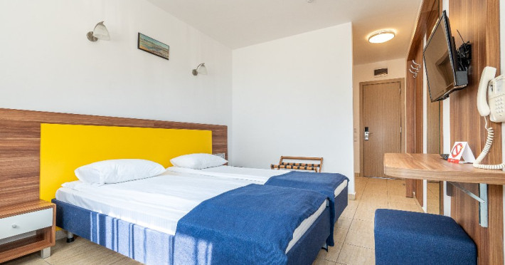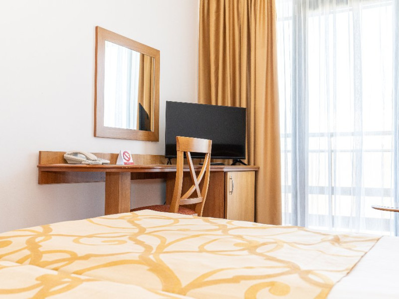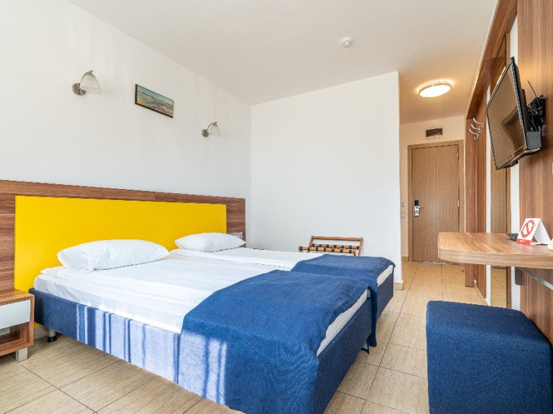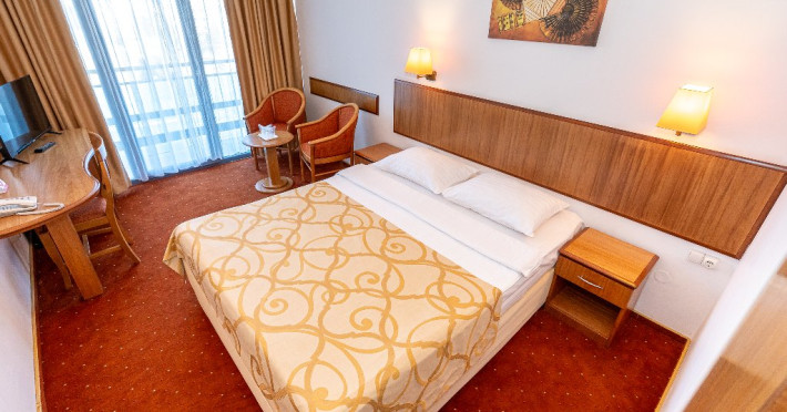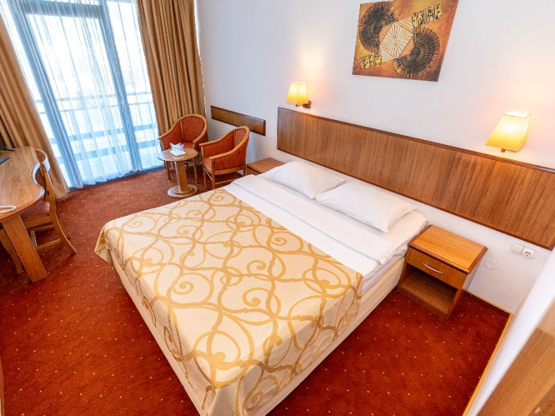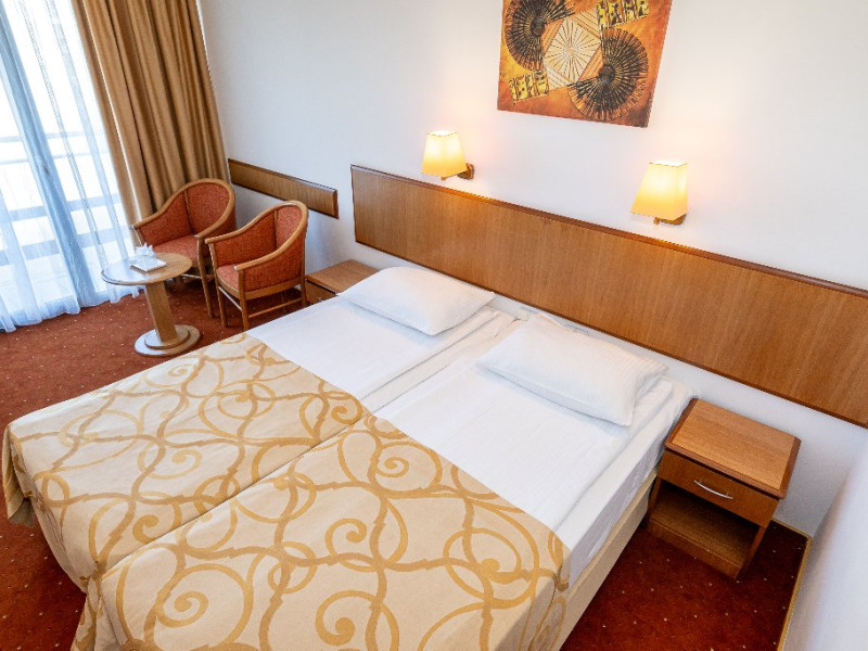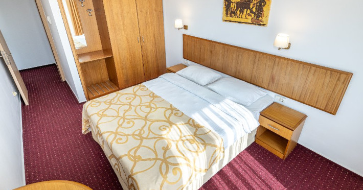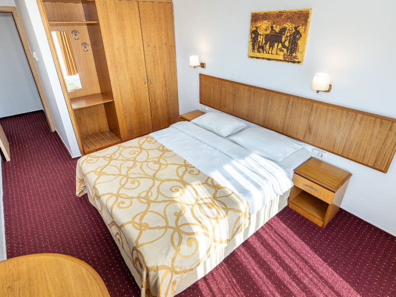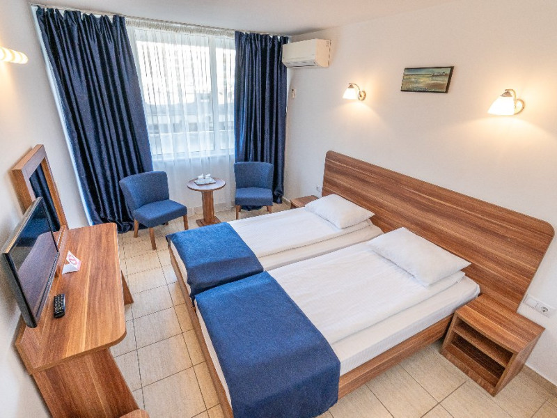 Camerele duble matrimoniale/twin Hotel Narcis, cu o suprafata de 14 mp, sunt situate atat la parterul hotelului, fara balcon, cat si la etaj- cu balcon si dispun de pat matrimonial(160/200 cm) sau twin (2*80/200 cm). Dotari: acces in camera cu cheie mecanica, aer conditionat, TV LCD, baie cu cabina de dus, cosmetice hoteliere, balcon cu mobilier de terasa pentru camerele situate la etaj. Recomandare: Camera Dubla matrimoniala poate gazdui 2 adulti si 1 copil care va dormi in pat cu adultii.