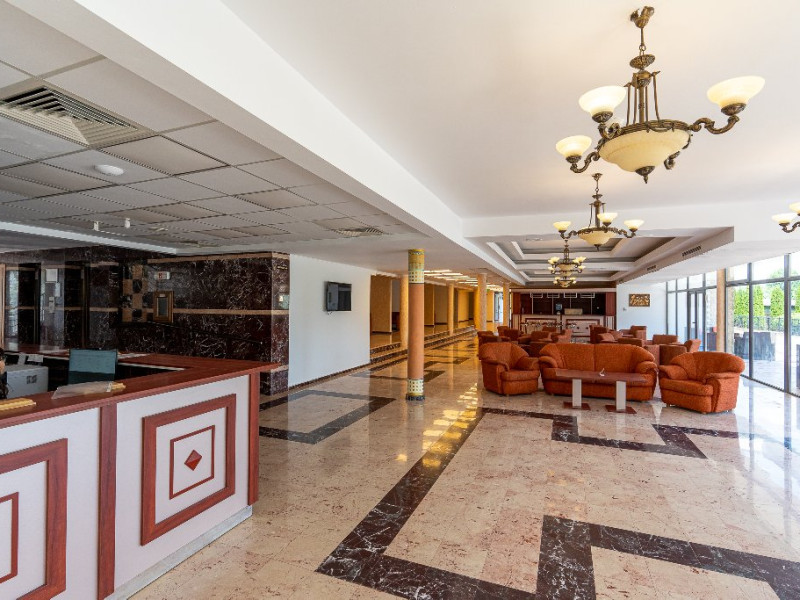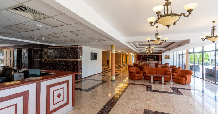 SERVICII MASA Servicii de masa all inclusive (in regim bufet, oferite la restaurant): - micul dejun intre orele 07:30- 10:00 - gustarea intre orele 11:00 - 12:00; - pranzul intre orele 13:00 - 15:00; - gustarea intre orele 16:30 - 17:30; - cina intre orele 19:00-21:00; - apa plata, apa minerala, cafea si bauturi racoritoare oferite la restaurant si pe terasa intre orele 07:30 - 22:00. - vinul casei si bere draft oferite la restaurant si pe terasa intre orele 11:00 - 22:00; - vodka, coniac, lichior, vermut oferite la restaurant in timpul mesei de pranz (13:00 - 15.00) si al cinei (19:00 - 21:00); Bauturile incluse in pachet nu sunt imbuteliate, acestea se servesc in pahare de unica folosinta(plastic/carton). Serviciile din ziua sosirii incep cu pranzul(13:00 - 15:00), moment in care veti primi bratara care va ofera acces la facilitatile resortului mentionate in pachetul all inclusive. Alocarea camerelor se efectueaza incepand cu ora 16:00 si poate dura pana la ora 20:00. Check-out-ul se realizeaza cel tarziu la ora 11:00 si presupune predarea cardurilor de acces si a bratarilor. Dupa aceasta ora nu va mai fi permis accesul la facilitatile resortului.