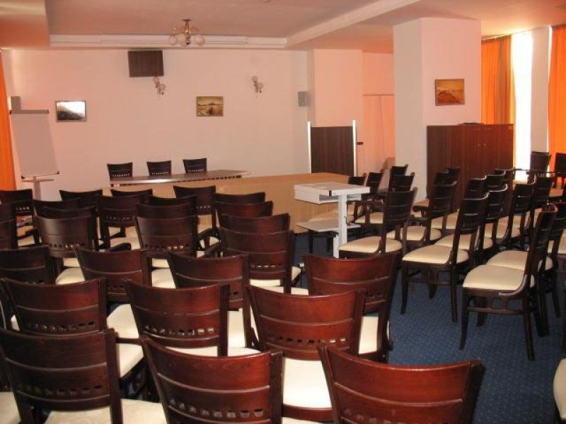FACILITATI EVENIMENTE Sali de conferinta: 1 - o sala cu capacitate 70- 90 locuri dotata cu: aer conditionat, sonorizare, ecran, acces internet, videoproiector, pupitru.