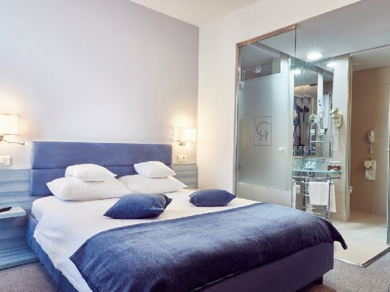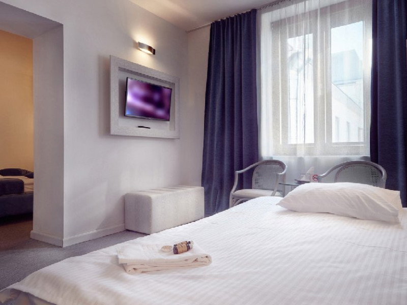 DESCRIERE CAMERE Hotelul pune la dispozitia oaspetilor 130 de camere, 4 apartamente si 1 apartament prezidential situat la ultimul etaj. Ca oaspete al hotelului nostru va punem la dispozitie camere standard sau deluxe, iar pentru cei care doresc mai mult spatiu pot alege un apartament. Oaspetii hotelului nostru pot alege intre camere standard sau camere deluxe. Cei care isi doresc un spatiu mai mare de cazare in Sibiu, pot opta pentru un apartament. In functie de preferinte, oaspetii pot alege o camera dotata fie cu o cabina de dus, fie cu o cada. In plus, hotelul are si camere cu facilitati speciale pentru persoanele cu dizabilitati sau mobilitate redusa.