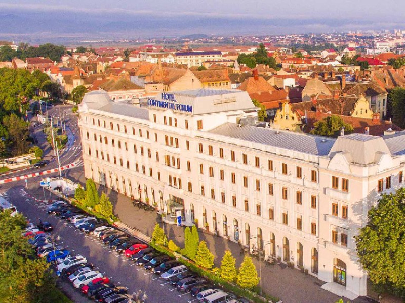 INFORMATII GENERALE Hotel Continental Forum Sibiu defineste granita dintre sfarsitul epocii hanului medieval si inceputul industriei hoteliere moderne. Cladirea acestui hotel din Sibiu, clasificat la 4 stele, este un martor tacut al istoriei orasului si a avut nu mai putin de cinci denumiri de-a lungul timpului: La Bila Aurie, Bulevard, Habermann, Europa si denumirea de azi, Continental Forum.