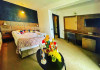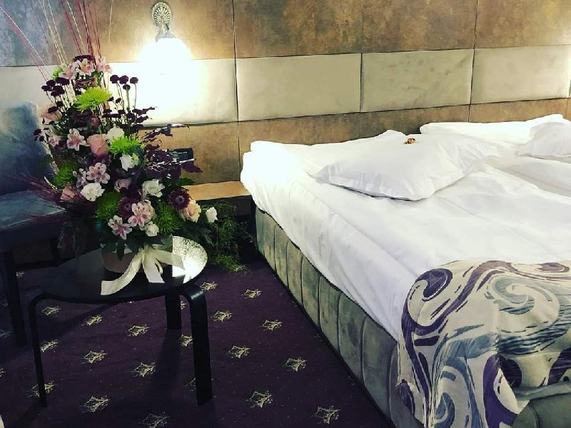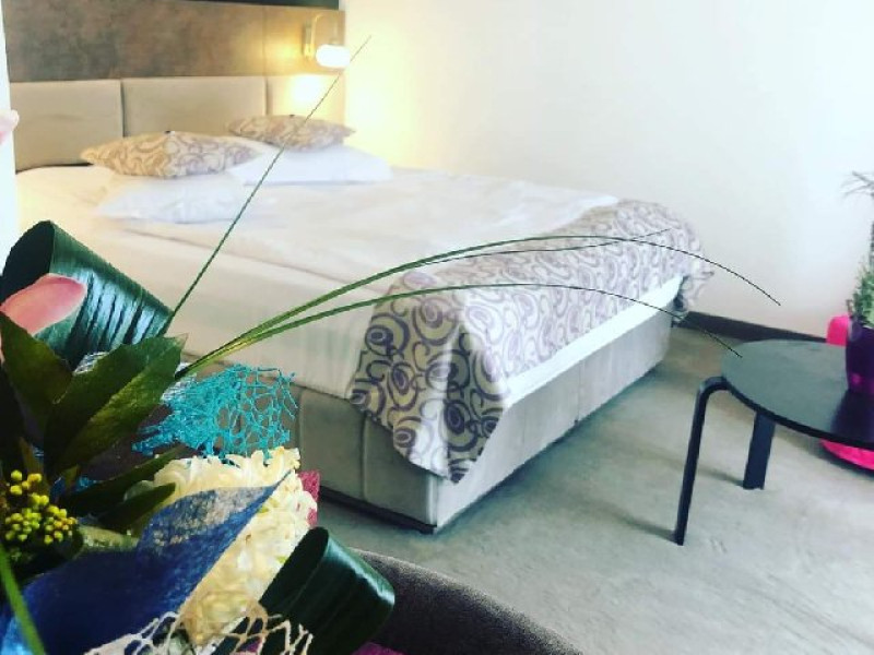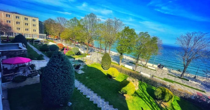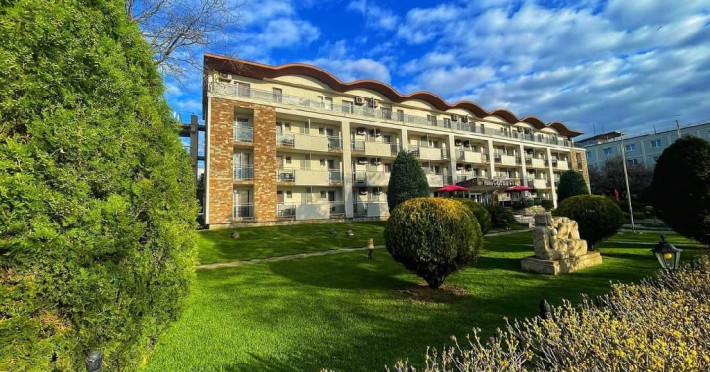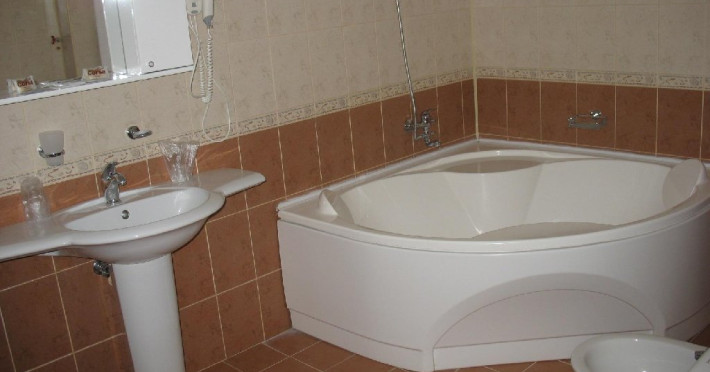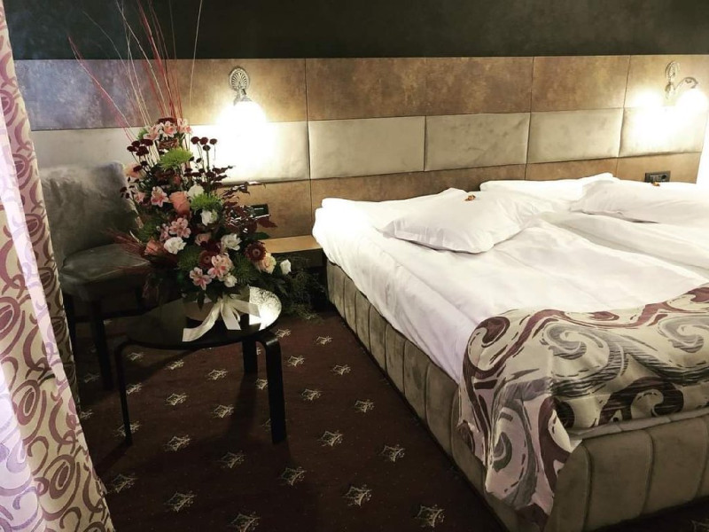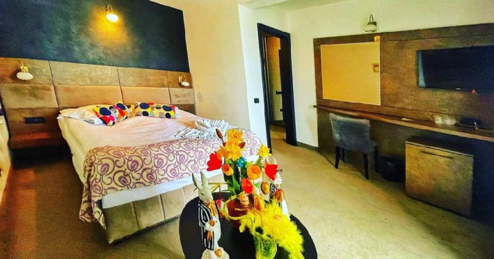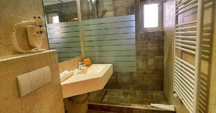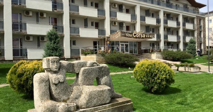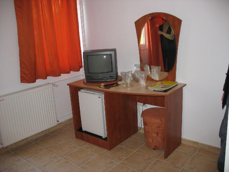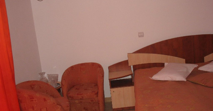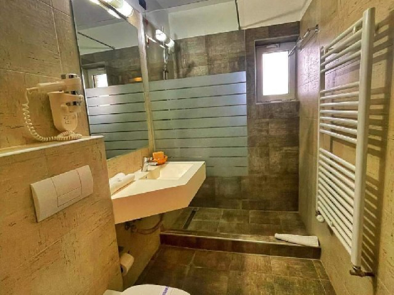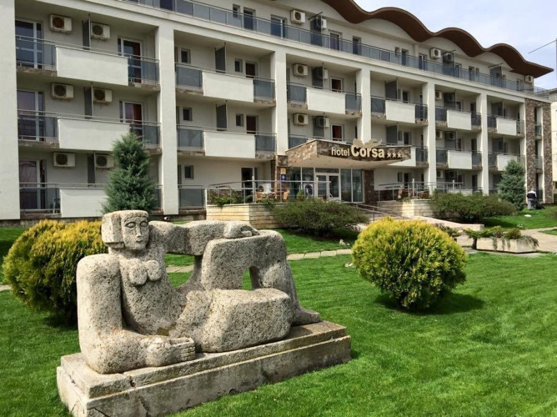 FACILITATI UNITATE Dotari generale: parcare proprie- contra cost, salon de mic dejun, bufet bar- pizzerie cu un numar de 100 locuri cu terase neacoperite si 40 locuri- salon incinta, terasa Corsa. Parcarea auto se asigura contra cost, la urmatoarele tarife: - motocicleta - 25 lei/zi - autoturism - 35 lei/zi - camion - 35 lei/zi Observatii: Se accepta animale de companie doar cu acordul hotelului si numai daca animalul de companie are carnet de sanatate vizat la zi. Taxa animal de companie: 50 Lei/ zi in perioadele 06.01-31.05.2026 / 01.10-23.12.2026; 100 Lei/ zi in perioada 01.06- 30.09.2026. Animalele sunt acceptate doar in camerele standard sau apartamente, nu si in camerele superioare. Tratament: tratamentul se poate efectua in bazele de tratament ale Sanatoriului Balnear Mangalia. DESCRIERE CAMERE Dotari camere: aer conditionat, TV, minibar, baie cu cada- in apartamente, baie cu dus- in camerele duble, balcon- numai la camerele cu vedere la mare, uscator de par- in apartamente. Numar total de camere: 48 Duble: 45- din care 24 camere cu vedere la mare si 21 camere cu vedere la oras; 7 camere duble au mocheta si restul au pardoseala cu gresie. Apartamente: 3, sunt compuse din living si dormitor.