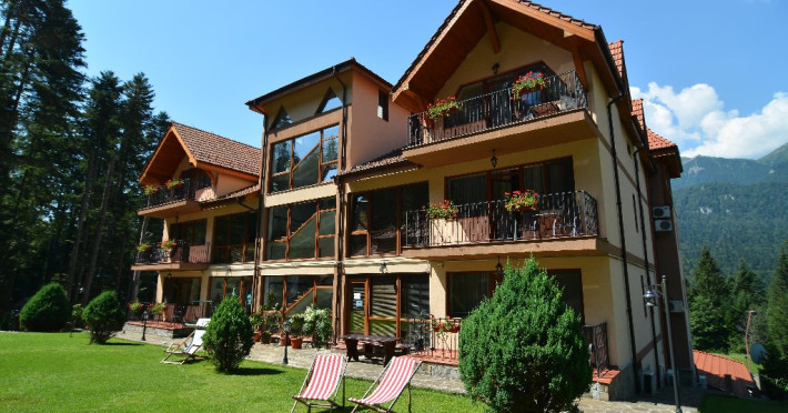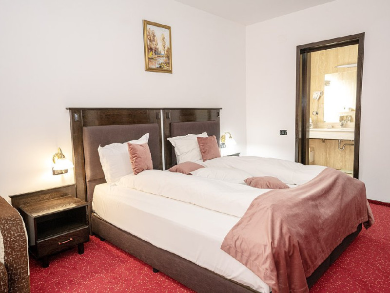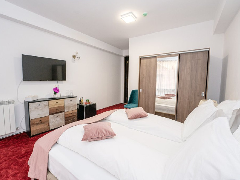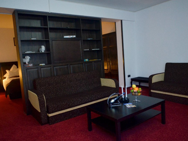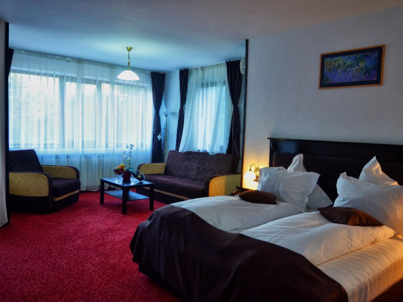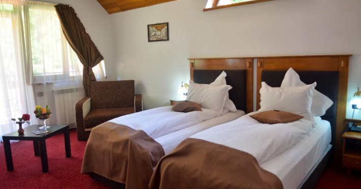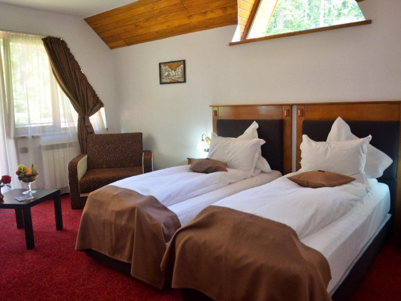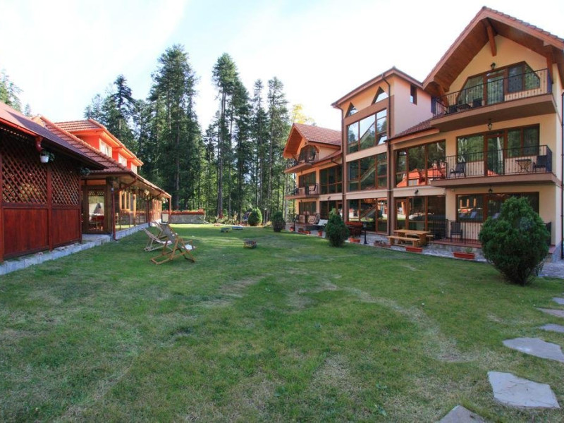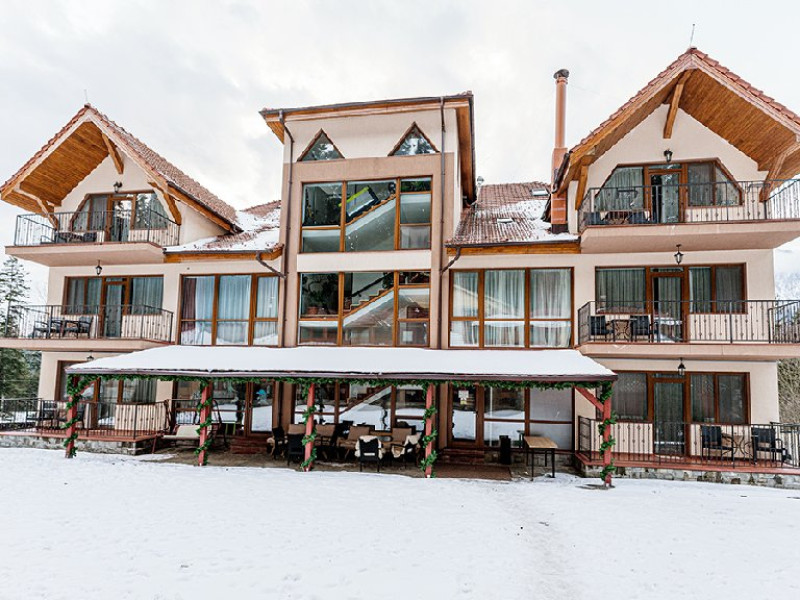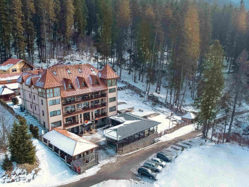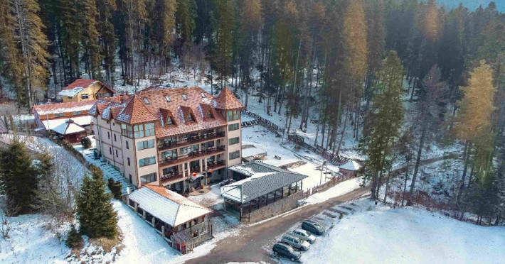 INFORMATII GENERALE Hotelul Cumpatu este situat intr-o zona de vis a Cartierului Cumpatu din Sinaia. DESCRIERE UNITATE DE CAZARE Inconjurat de privelistea maiestuoasa a Muntilor Bucegi, intr-un decor feeric, acest loc magic te va ajuta sa te detasezi de agitatia urbana. Insa nu doar paradisul naturii din jur te va scapa de stres, ci si eleganta si rafinamentul complexului hotelier, care te vor conduce intr-un ambient luxos, fiind locul ideal atat pentru relaxare, distractie dar si pentru o calatorie de afaceri. Hotel Cumpatu este situat in Cartierul Cumpatu din Sinaia, intr-o zona linistita. Serviciile de calitate, designul interior, tablourile autentice alaturi de peisajul montan creeaza locul ideal pentru petrecerea unor clipe de neuitat. FACILITATI UNITATE Dotari generale: parcare proprie monitorizata video, internet wireless in tot complexul, pastrare obiecte de valoare, 2 restaurante (cu specific vanatoresc, dar si cu preparate din bucataria romaneasca si gastronomia internationala), loc de joaca interior si exterior pentru copii, terasa cu priveliste asupra masivului Bucegi, zona barbeque, colt cu animalute, parc de aventura (cu trasee de catarare prin copaci, perete de escalada, tir cu arcul, paintball, tiroliene, trasee offroad, biliard, tenis de masa). DESCRIERE CAMERE Hotel Cumpatu dispune de un total de 17 camere repartizate astfel: - 4 Duble twin cu 2 paturi single, 2 fotolii extensibile, minibar (contracost), cafetiera (cafea si ceai din partea casei), balcon, TV plat, cablu tv, wi-fi; - 3 Duble executive fara balcon (mansardate): 2 paturi unite, 1 fotoliu extensibil, minibar (contracost), cafetiera (cafea si ceai din partea casei), TV plat, cablu tv, wi-fi; - 3 Duble executive cu balcon cu 2 paturi unite, 1 fotoliu extensibil, minibar (contracost), cafetiera (cafea si ceai din partea casei), balcon, TV plat, cablu tv, wi-fi; - 2 Duble superior cu balcon cu pat matrimonial + canapea extensibila, minibar (contracost), cafetiera (cafea si ceai din partea casei), balcon, TV plat, cablu tv, wi-fi; - 4 Duble deluxe cu pat matrimonial + canapea extensibila + un fotoliu extensibil, minibar (contracost), cafetiera (cafea si ceai din partea casei), balcon TV plat, cablu tv, wi-fi. - 2 Duble deluxe cu semineu cu pat matrimonial + canapea extensibila + fotoliu extensibil minibar (contracost), cafetiera (cafea si ceai din partea casei), balcon, TV plat, cablu tv, wi-fi; Dotari camera: baie proprie - cu cada (exceptie camerele executive fara balcon care au cabina de dus), TV cu receptie prin cablu, cana fierbator (ceai, cafea si zahar din partea casei), minibar (produse contra-cost), cosmetice de baie, papuci si halate de baie.LOCALIZARE Hotelul Cumpatu este situat intr-o zona de vis a Cartierului Cumpatu din Sinaia. ATRACTII TURISTICE Casa Memoriala George Enescu, Manastirea Sinaia, Castelul Pelisor, Manastirea Caraiman, Castelul Peles, Cazinoul Sinaia, Parcul Dimitrie Ghica, Garile Regale din Sinaia, Muzeul de trenulete, partiile de ski, telegondola. POLITICI Nu sunt permise animalele de companie. SERVICII DE MASA Se acorda in restaurantul propriu. Complexul dispune de 2 restaurante (cu specific vanatoresc, dar si cu preparate din bucataria romaneasca si gastronomia internationala). FACILITATI COPII Loc de joaca interior si exterior pentru copii FACILITATI EVENIMENTE Sala de conferinta cu o capacitate de 80 locuri, complet echipata din punct de vedere tehnic (videoproiector de ultima generatie, ecran proiectie, flipchart, Lcd-Tv, sonorizare, internet wireless, consumabilele oferite gratuit.