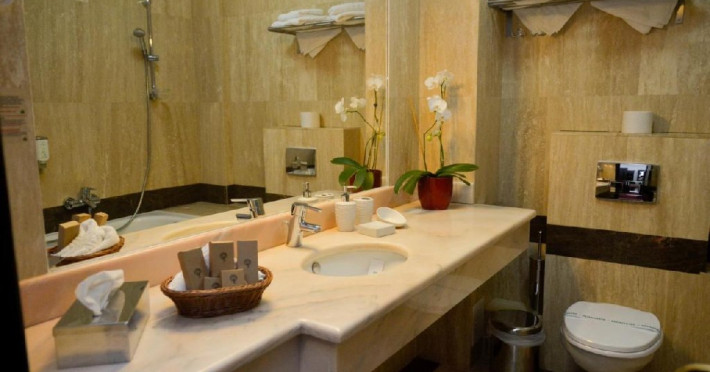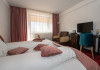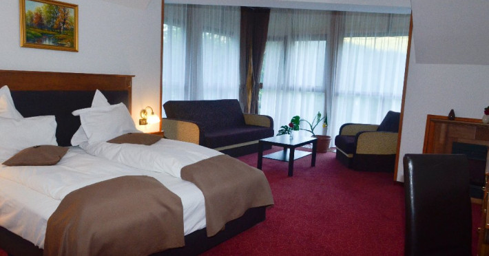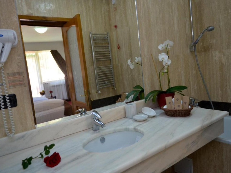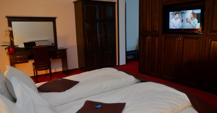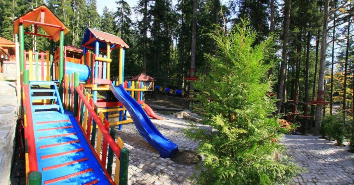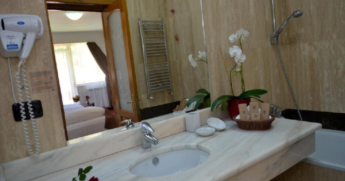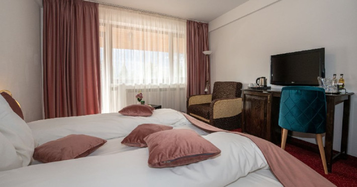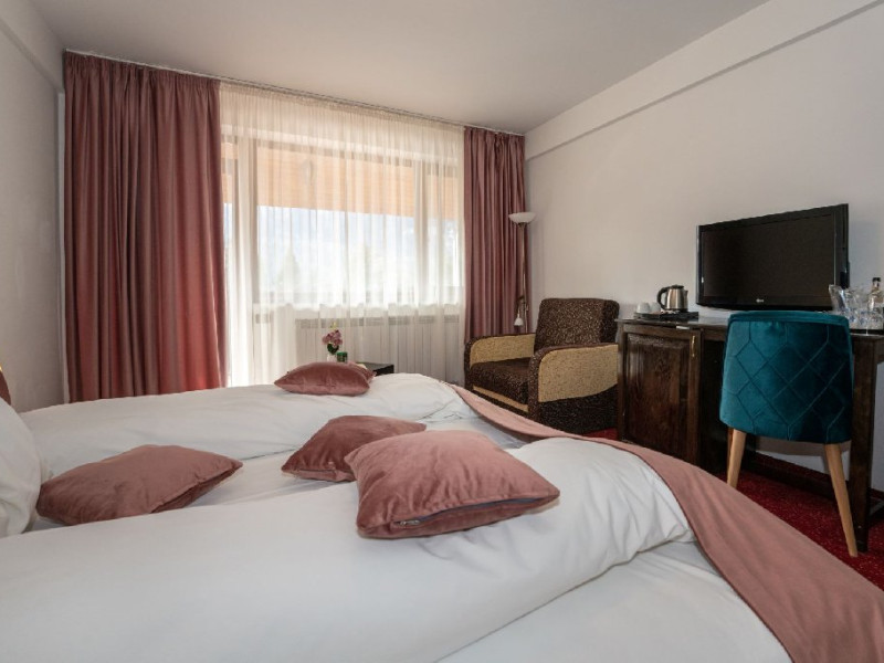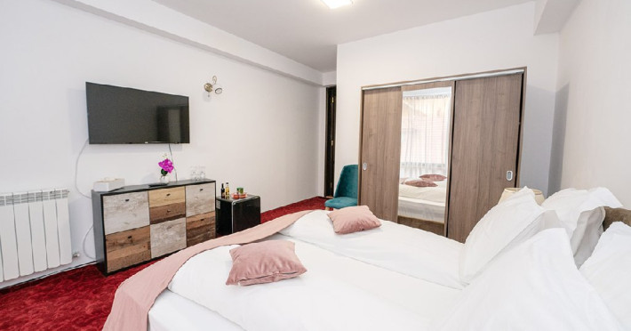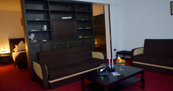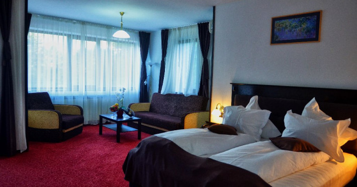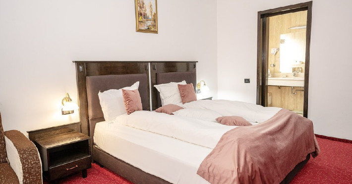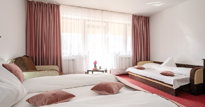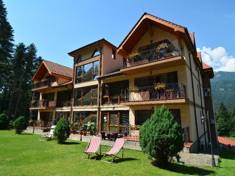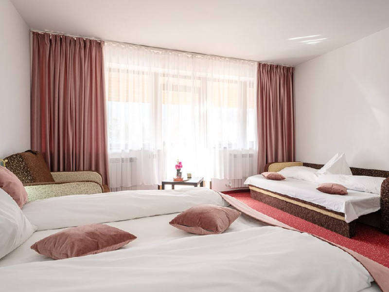 INFORMATII GENERALE Hotelul Cumpatu este situat intr-o zona de vis a Cartierului Cumpatu din Sinaia. DESCRIERE UNITATE DE CAZARE Inconjurat de privelistea maiestuoasa a Muntilor Bucegi, intr-un decor feeric, acest loc magic te va ajuta sa te detasezi de agitatia urbana. Insa nu doar paradisul naturii din jur te va scapa de stres, ci si eleganta si rafinamentul complexului hotelier, care te vor conduce intr-un ambient luxos, fiind locul ideal atat pentru relaxare, distractie dar si pentru o calatorie de afaceri. Hotel Cumpatu este situat in Cartierul Cumpatu din Sinaia, intr-o zona linistita. Serviciile de calitate, designul interior, tablourile autentice alaturi de peisajul montan creeaza locul ideal pentru petrecerea unor clipe de neuitat. FACILITATI UNITATE Dotari generale: parcare proprie monitorizata video, internet wireless in tot complexul, pastrare obiecte de valoare, 2 restaurante (cu specific vanatoresc, dar si cu preparate din bucataria romaneasca si gastronomia internationala), loc de joaca interior si exterior pentru copii, terasa cu priveliste asupra masivului Bucegi, zona barbeque, colt cu animalute, parc de aventura (cu trasee de catarare prin copaci, perete de escalada, tir cu arcul, paintball, tiroliene, trasee offroad, biliard, tenis de masa). DESCRIERE CAMERE Hotel Cumpatu dispune de un total de 17 camere repartizate astfel: - 4 Duble twin cu 2 paturi single, 2 fotolii extensibile, minibar (contracost), cafetiera (cafea si ceai din partea casei), balcon, TV plat, cablu tv, wi-fi; - 3 Duble executive fara balcon (mansardate): 2 paturi unite, 1 fotoliu extensibil, minibar (contracost), cafetiera (cafea si ceai din partea casei), TV plat, cablu tv, wi-fi; - 3 Duble executive cu balcon cu 2 paturi unite, 1 fotoliu extensibil, minibar (contracost), cafetiera (cafea si ceai din partea casei), balcon, TV plat, cablu tv, wi-fi; - 2 Duble superior cu balcon cu pat matrimonial + canapea extensibila, minibar (contracost), cafetiera (cafea si ceai din partea casei), balcon, TV plat, cablu tv, wi-fi; - 4 Duble deluxe cu pat matrimonial + canapea extensibila + un fotoliu extensibil, minibar (contracost), cafetiera (cafea si ceai din partea casei), balcon TV plat, cablu tv, wi-fi. - 2 Duble deluxe cu semineu cu pat matrimonial + canapea extensibila + fotoliu extensibil minibar (contracost), cafetiera (cafea si ceai din partea casei), balcon, TV plat, cablu tv, wi-fi; Dotari camera: baie proprie - cu cada (exceptie camerele executive fara balcon care au cabina de dus), TV cu receptie prin cablu, cana fierbator (ceai, cafea si zahar din partea casei), minibar (produse contra-cost), cosmetice de baie, papuci si halate de baie.LOCALIZARE Hotelul Cumpatu este situat intr-o zona de vis a Cartierului Cumpatu din Sinaia. ATRACTII TURISTICE Casa Memoriala George Enescu, Manastirea Sinaia, Castelul Pelisor, Manastirea Caraiman, Castelul Peles, Cazinoul Sinaia, Parcul Dimitrie Ghica, Garile Regale din Sinaia, Muzeul de trenulete, partiile de ski, telegondola. POLITICI Nu sunt permise animalele de companie. SERVICII DE MASA Se acorda in restaurantul propriu. Complexul dispune de 2 restaurante (cu specific vanatoresc, dar si cu preparate din bucataria romaneasca si gastronomia internationala). FACILITATI COPII Loc de joaca interior si exterior pentru copii FACILITATI EVENIMENTE Sala de conferinta cu o capacitate de 80 locuri, complet echipata din punct de vedere tehnic (videoproiector de ultima generatie, ecran proiectie, flipchart, Lcd-Tv, sonorizare, internet wireless, consumabilele oferite gratuit.
