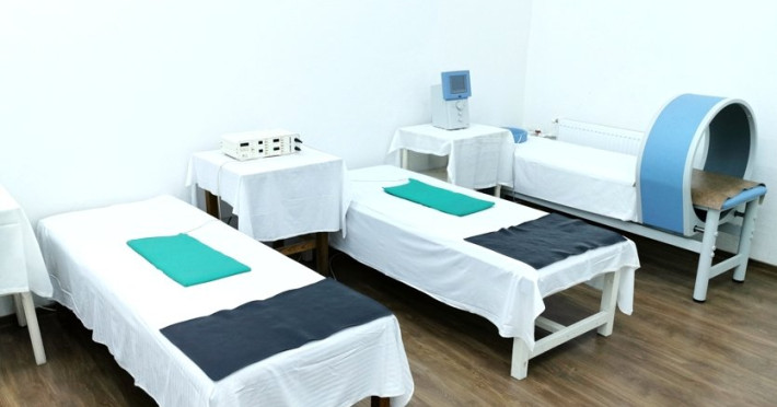 FACILITATI UNITATE Baza de tratament: asigura tratamente complexe pentru afectiuni: reumatismale inflamatorii (spondilita anchilozanta), reumatismale degenerative (spondiloza cervicala, dorsala, lombara), posttraumatice, neurologice periferice (pareze si paralizii), afectiuni asociate (ginecologice,respiratorii,dermatologice) si metabolice.