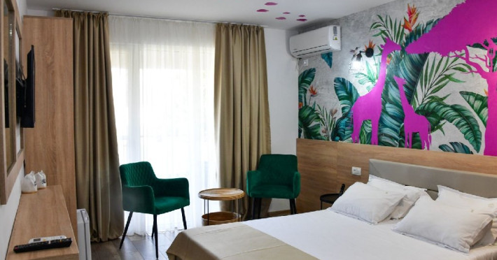 DESCRIERE UNITATE DE CAZARE Pastrand aceleasi standarde in ceea ce priveste diversitatea si calitatea serviciilor oferite, Ibis Styles Venus 4* aduce pe coasta Marii Negre un brand creativ si trendy, care se deosebeste prin designul unic si este dedicat famillilor cu copii dar si celor care prefera linistea si relaxarea. Hotelul a trecut prin amplu proces de renovare si modernizare pentru a aduce tema junglei pe litoralul romanesc. Jungle Style este tema care va aduce turistii intr-o frumoasa poveste de vacanta, elementele decorative impletindu-se armonios cu confortul si facilitatile marelui lant hotelier international Accor. Renovarea camerelor si a spatiilor comune a avut in vedere cresterea confortuui si integrarea cu designul vibrant, colorat si plin de personalitate al brandului Ibis Styles. Boltele si arcadele, designul arhitectonic original aduce hotelului un aer mediteranean care isi face simtita prezenta si in zona de relaxare din jurul piscinei. Farmecul aleilor pline de verdeata conduc turistii catre o experienta deosebita de vacanta, imbinand farmecul Marii Negre cu abordarea inovatoare si orientata spre turisti a lantului Ibis Styles. Surprinde inca de la intrare printr-o gradina cu o suprafata de peste 11.000 mp care ascunde 2 pavilioane cu regim de inaltime redus unde se gasesc 179 camere cu balcon.